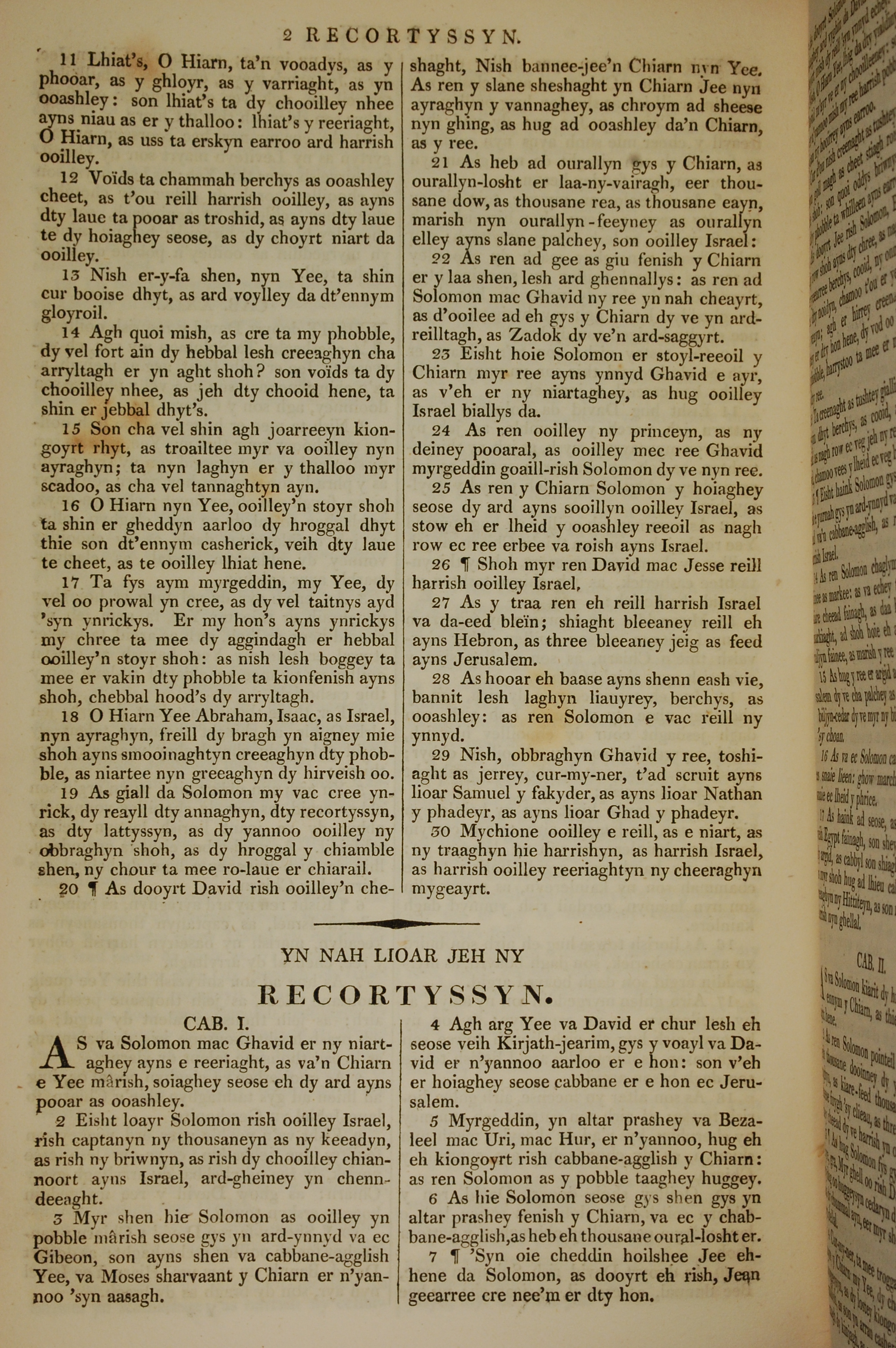1819年曼岛语圣经 历代志下 1 章 1 节到 1 章 7 节