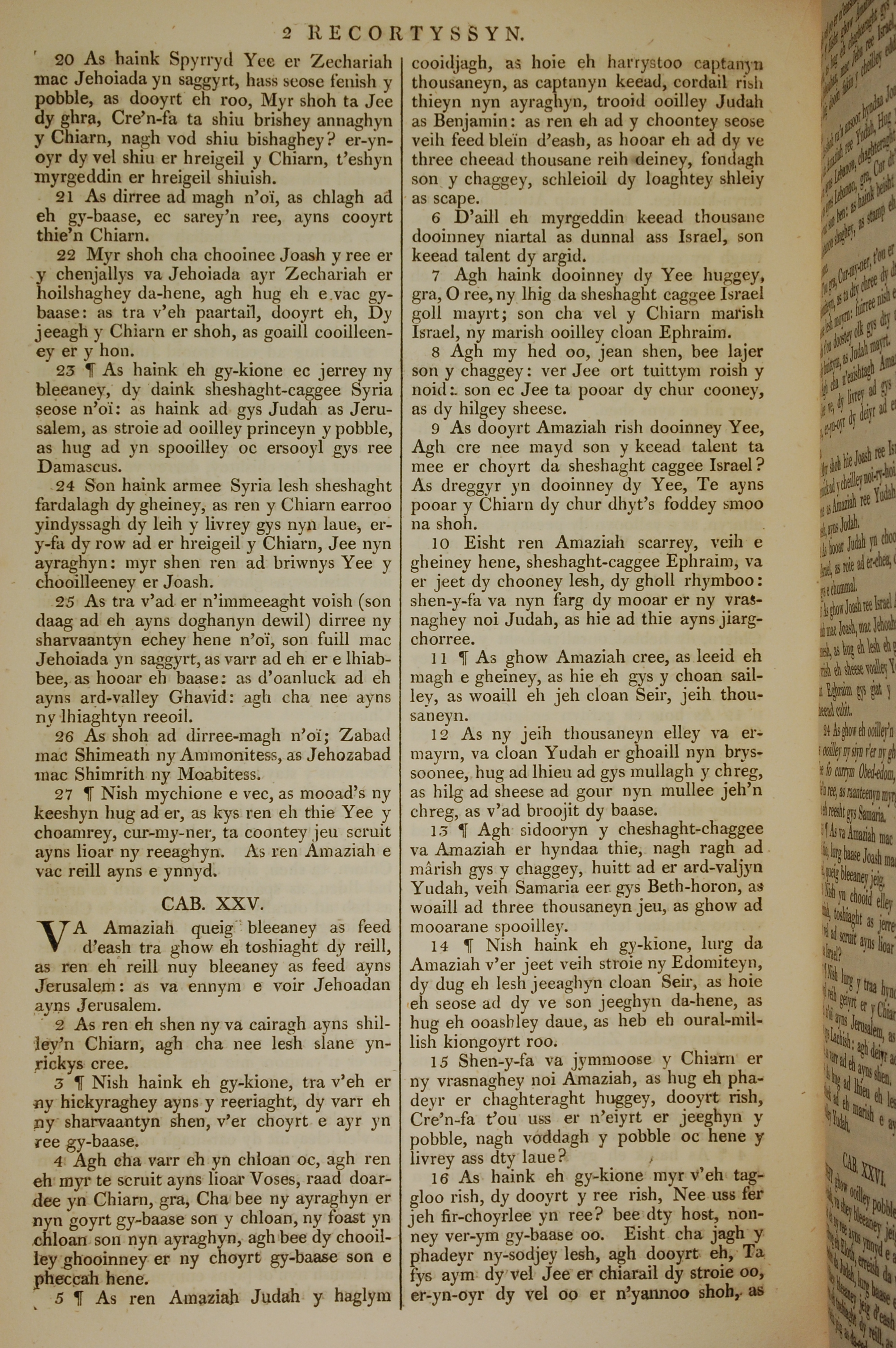 1819年曼岛语圣经 历代志下 24 章 20 节到 25 章 16 节