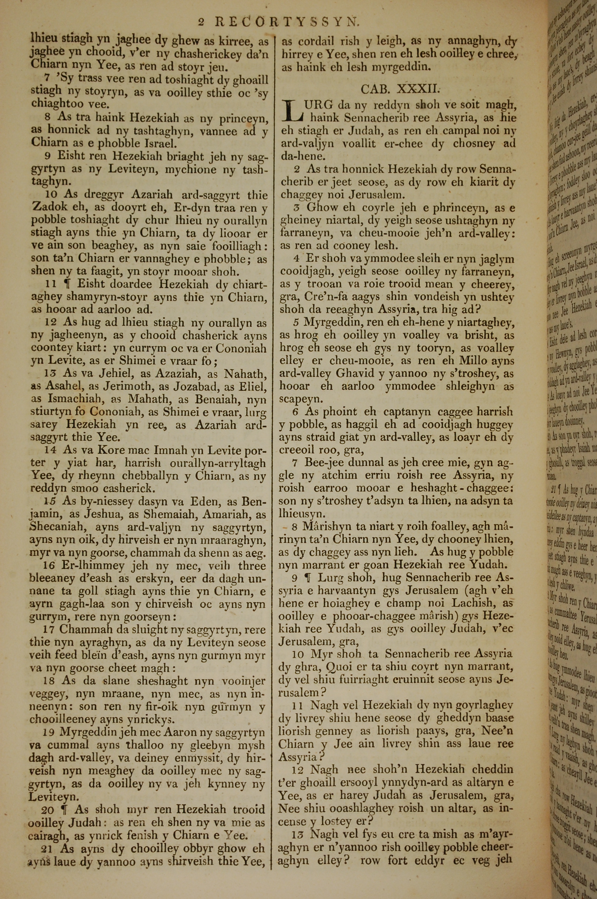 1819年曼岛语圣经 历代志下 31 章 7 节到 32 章 13 节