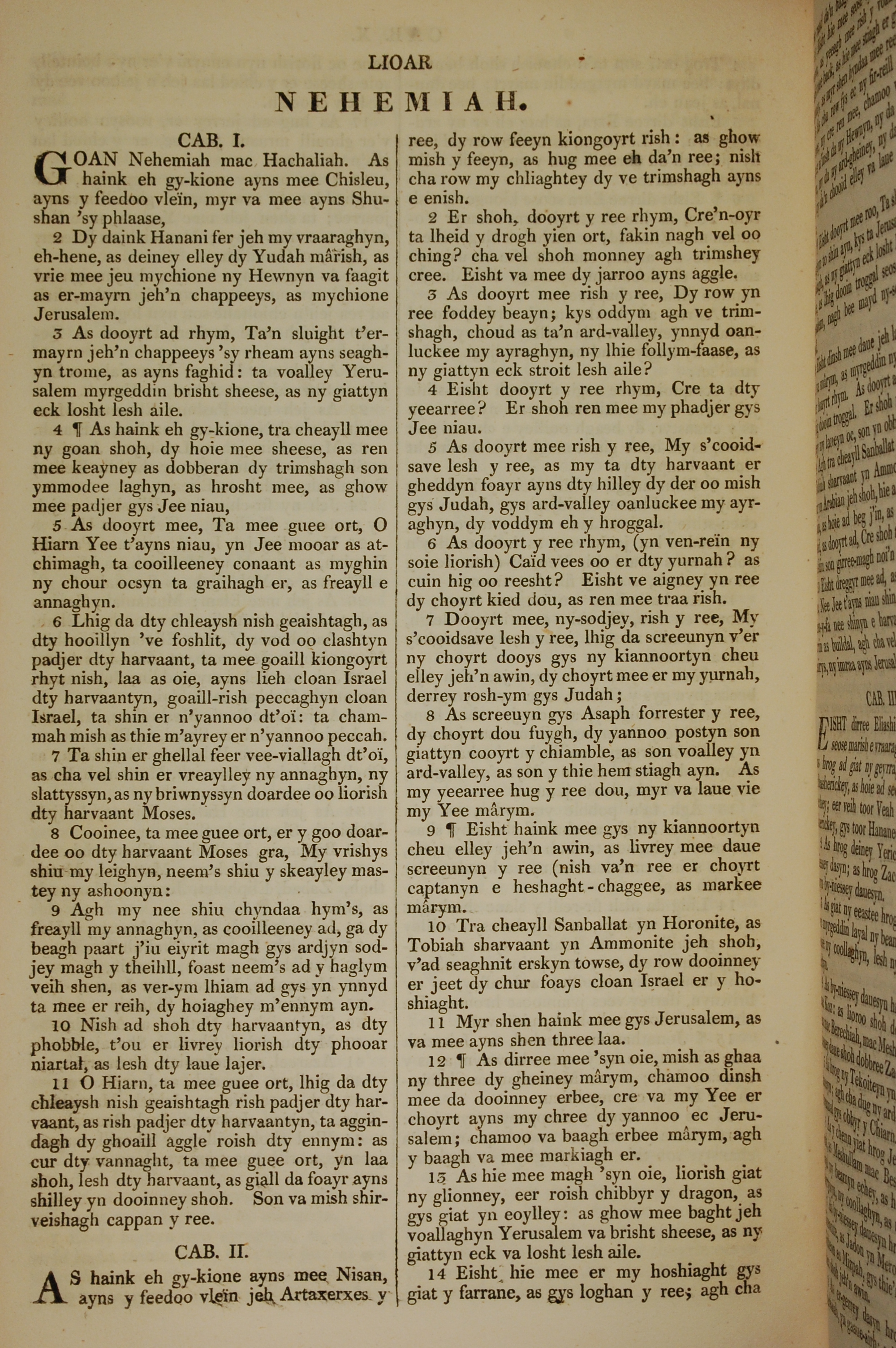 1819年曼岛语圣经 尼希米记 1 章 1 节到 2 章 14 节