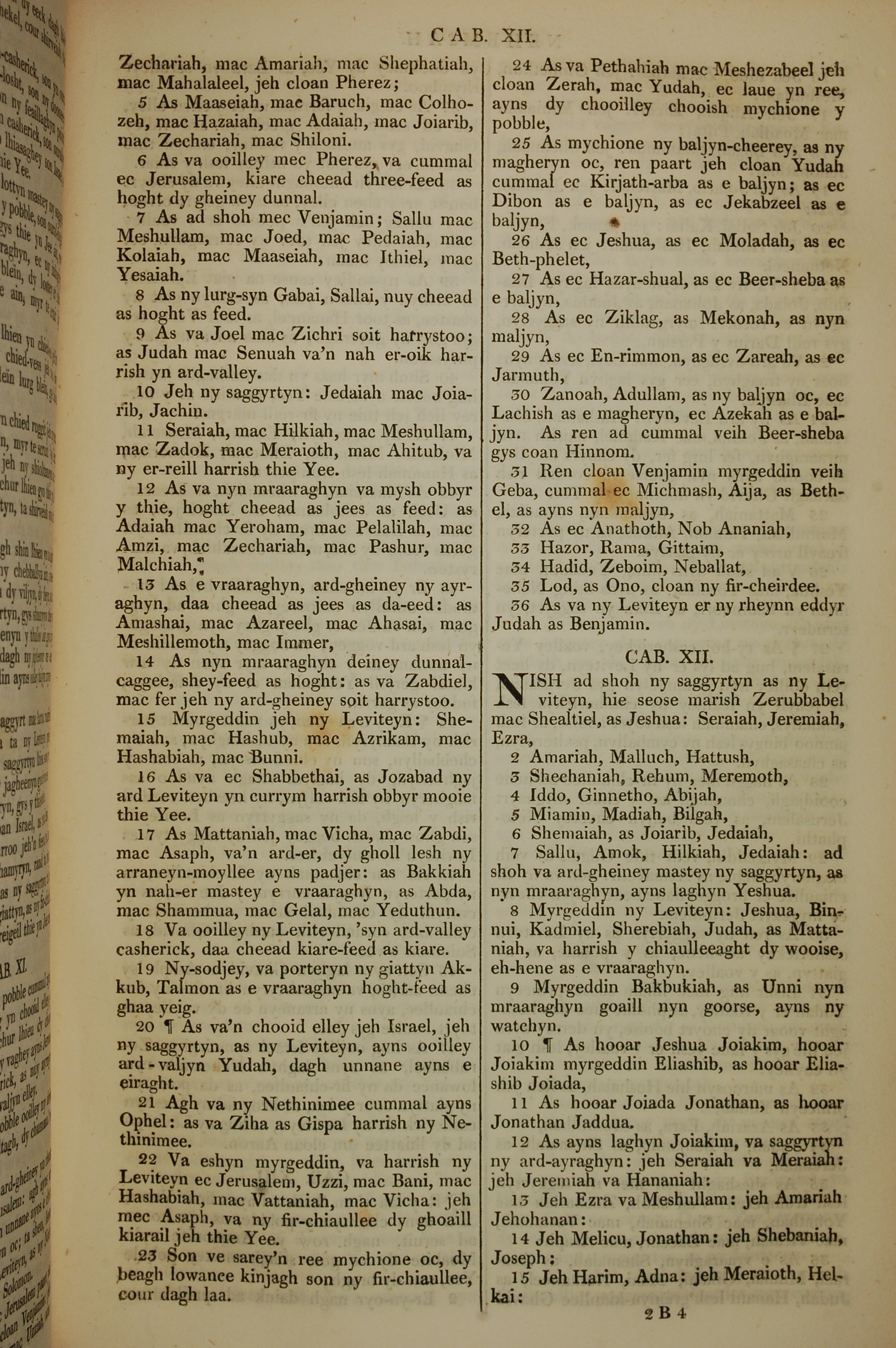 1819年曼岛语圣经 尼希米记 11 章 5 节到 12 章 15 节