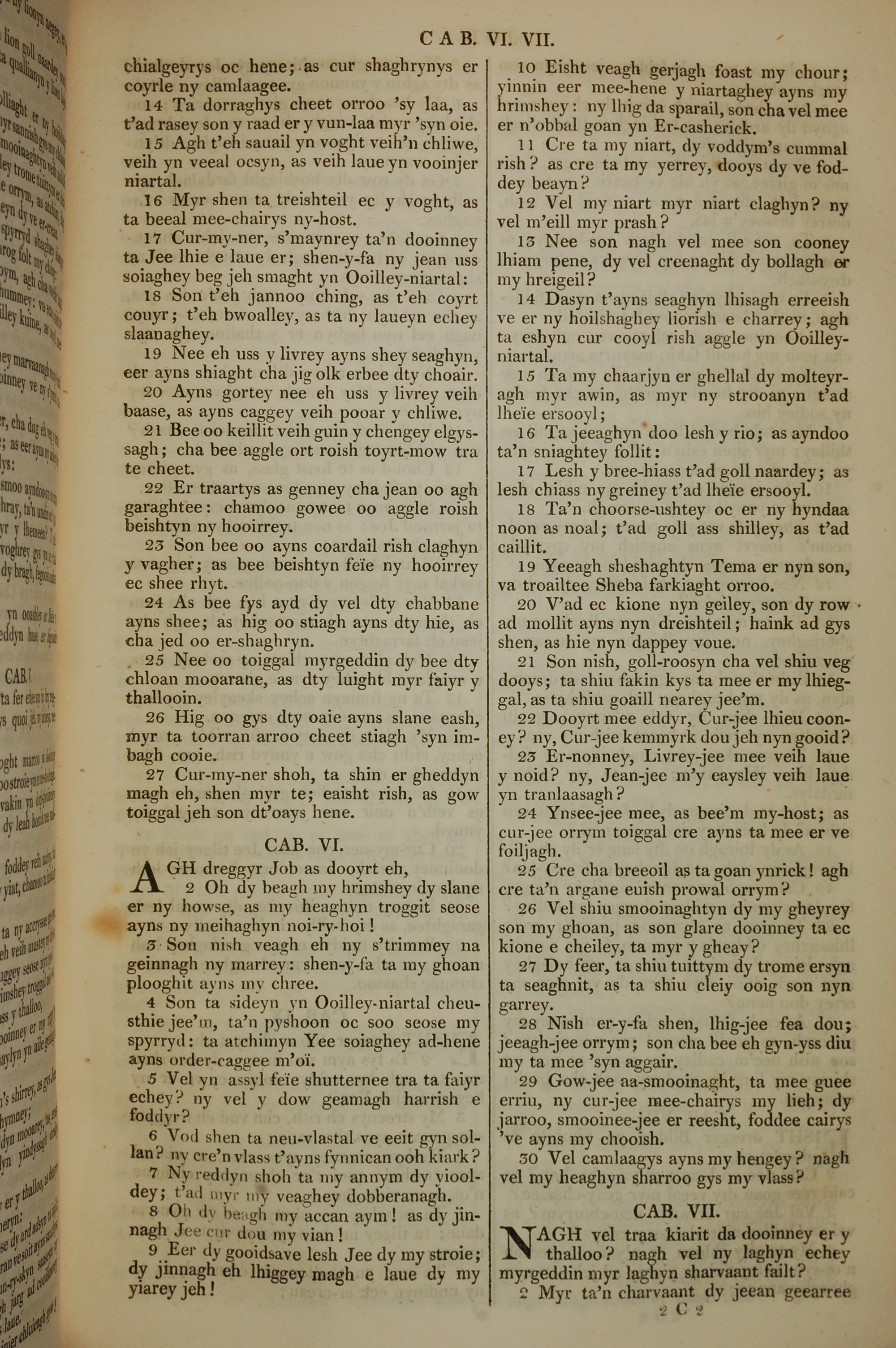 1819年曼岛语圣经 约伯记 5 章 14 节到 7 章 2 节