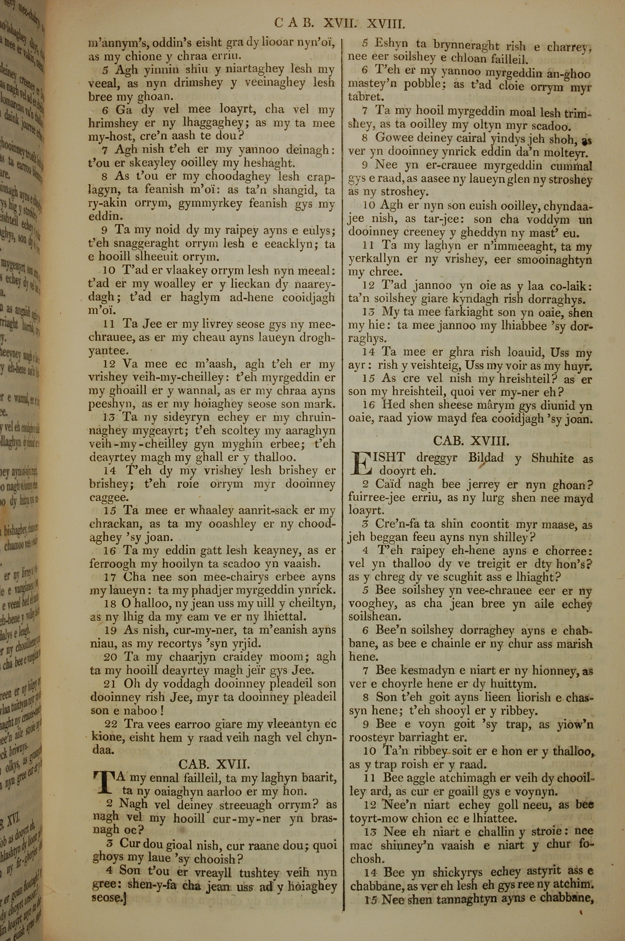 1819年曼岛语圣经 约伯记 16 章 5 节到 18 章 15 节