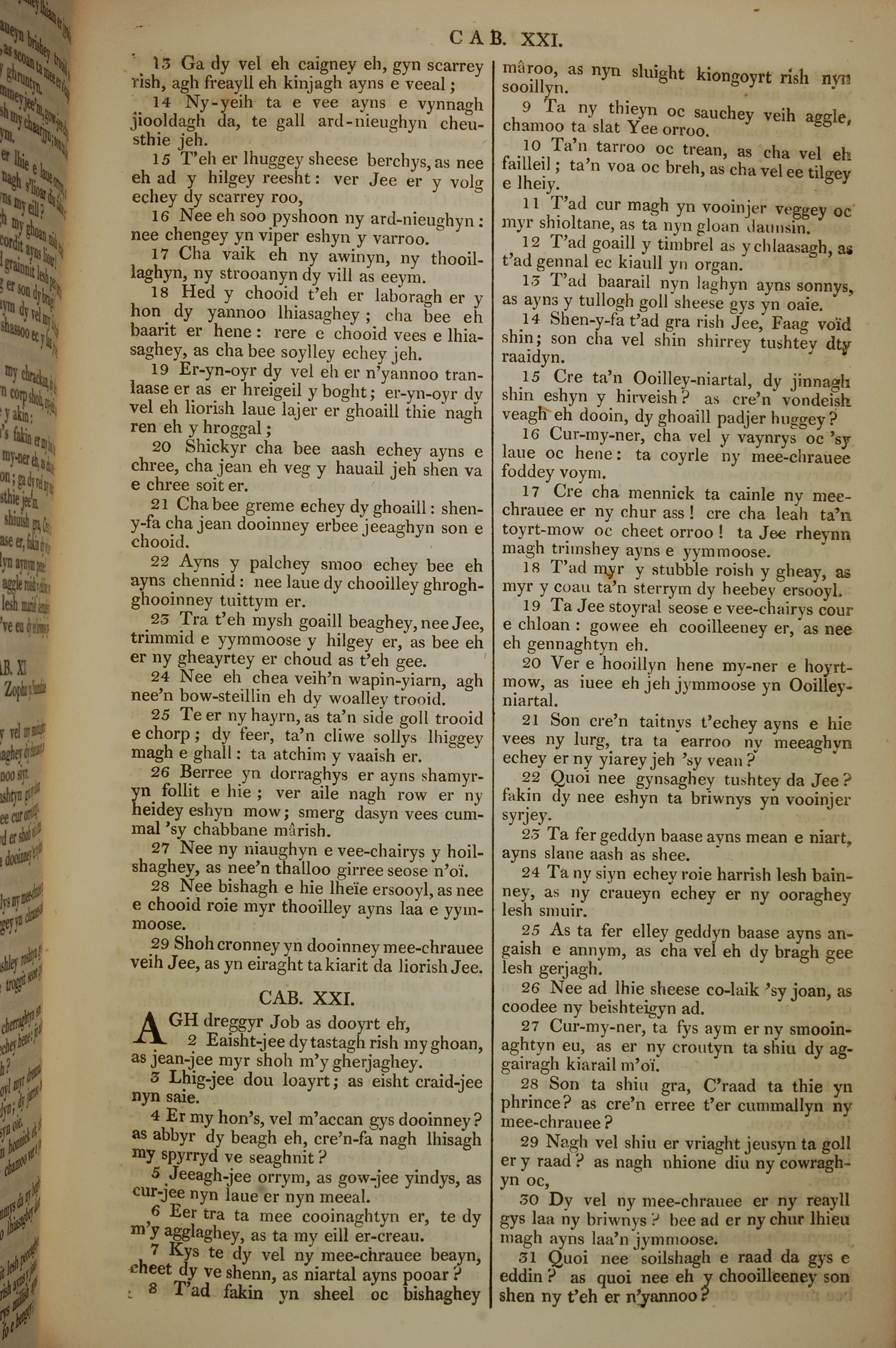 1819年曼岛语圣经 约伯记 20 章 13 节到 21 章 31 节