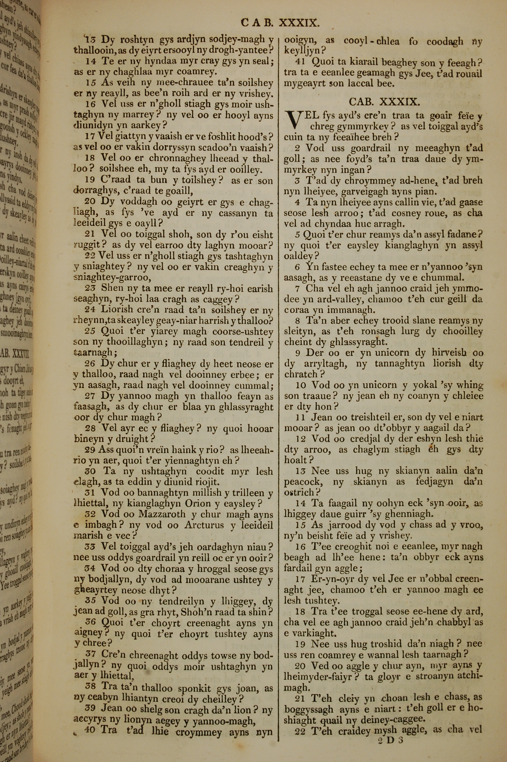 1819年曼岛语圣经 约伯记 38 章 13 节到 39 章 22 节