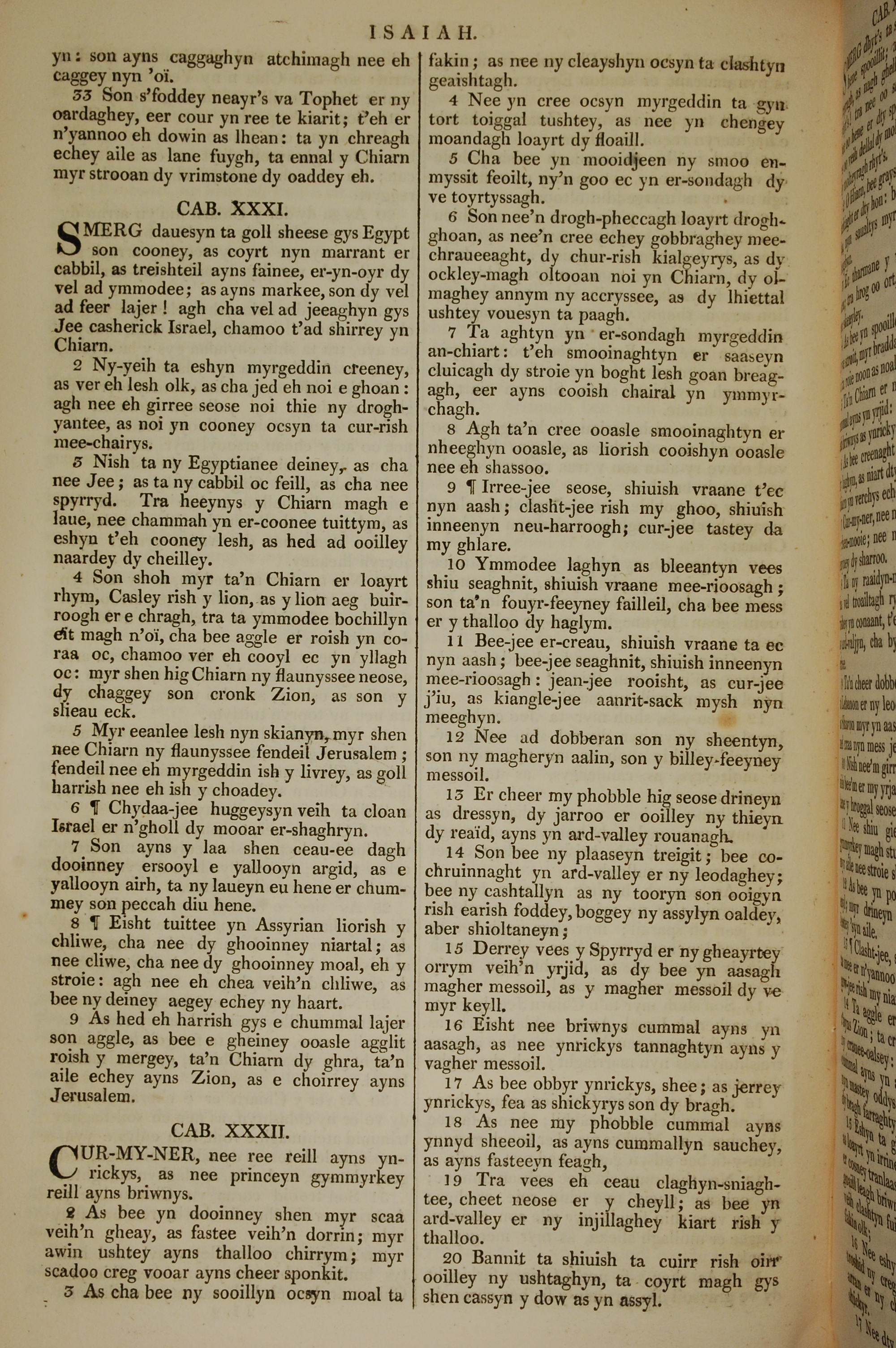 1819年曼岛语圣经 以赛亚书 30 章 33 节到 32 章 20 节