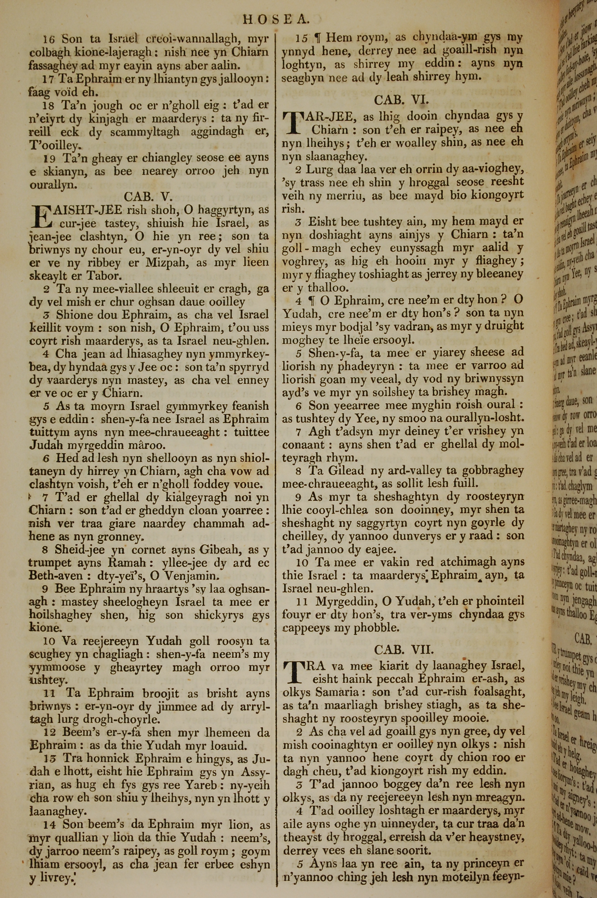 1819年曼岛语圣经 何西阿书 4 章 16 节到 7 章 5 节