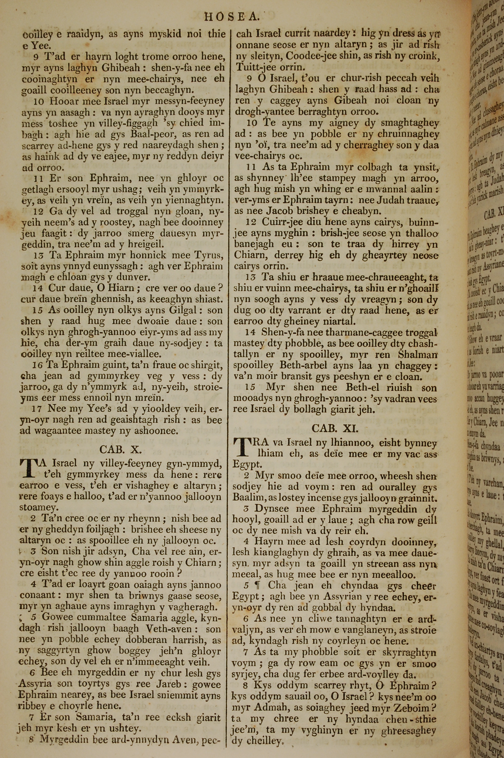 1819年曼岛语圣经 何西阿书 9 章 9 节到 11 章 8 节