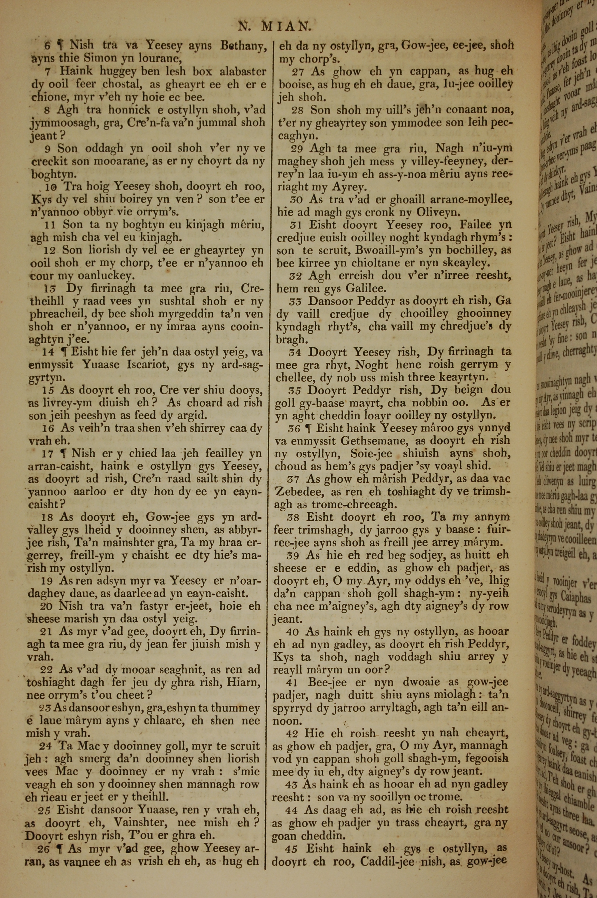 1819年曼岛语圣经 马太福音 26 章 6 节到 26 章 45 节