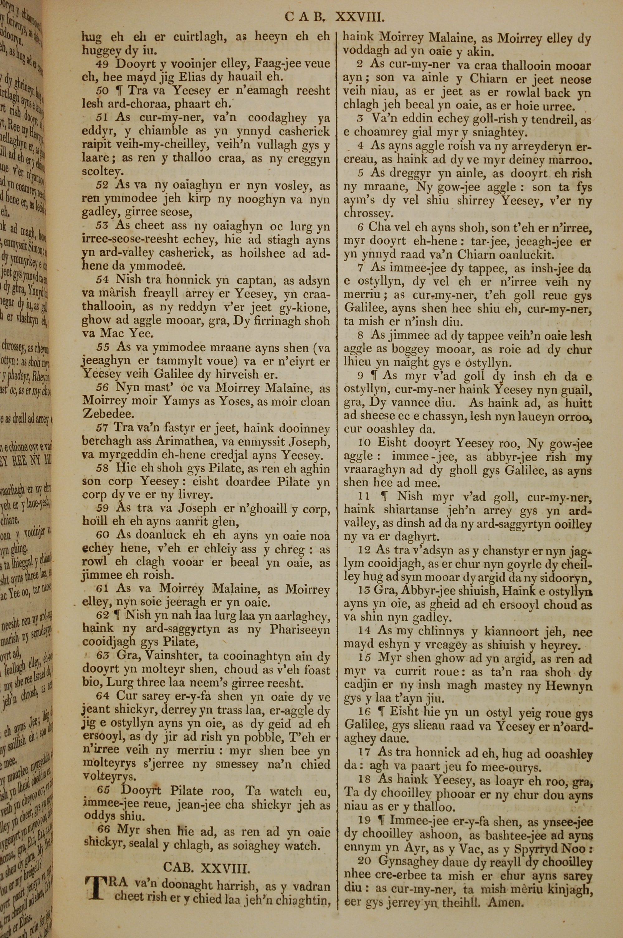 1819年曼岛语圣经 马太福音 27 章 49 节到 28 章 20 节