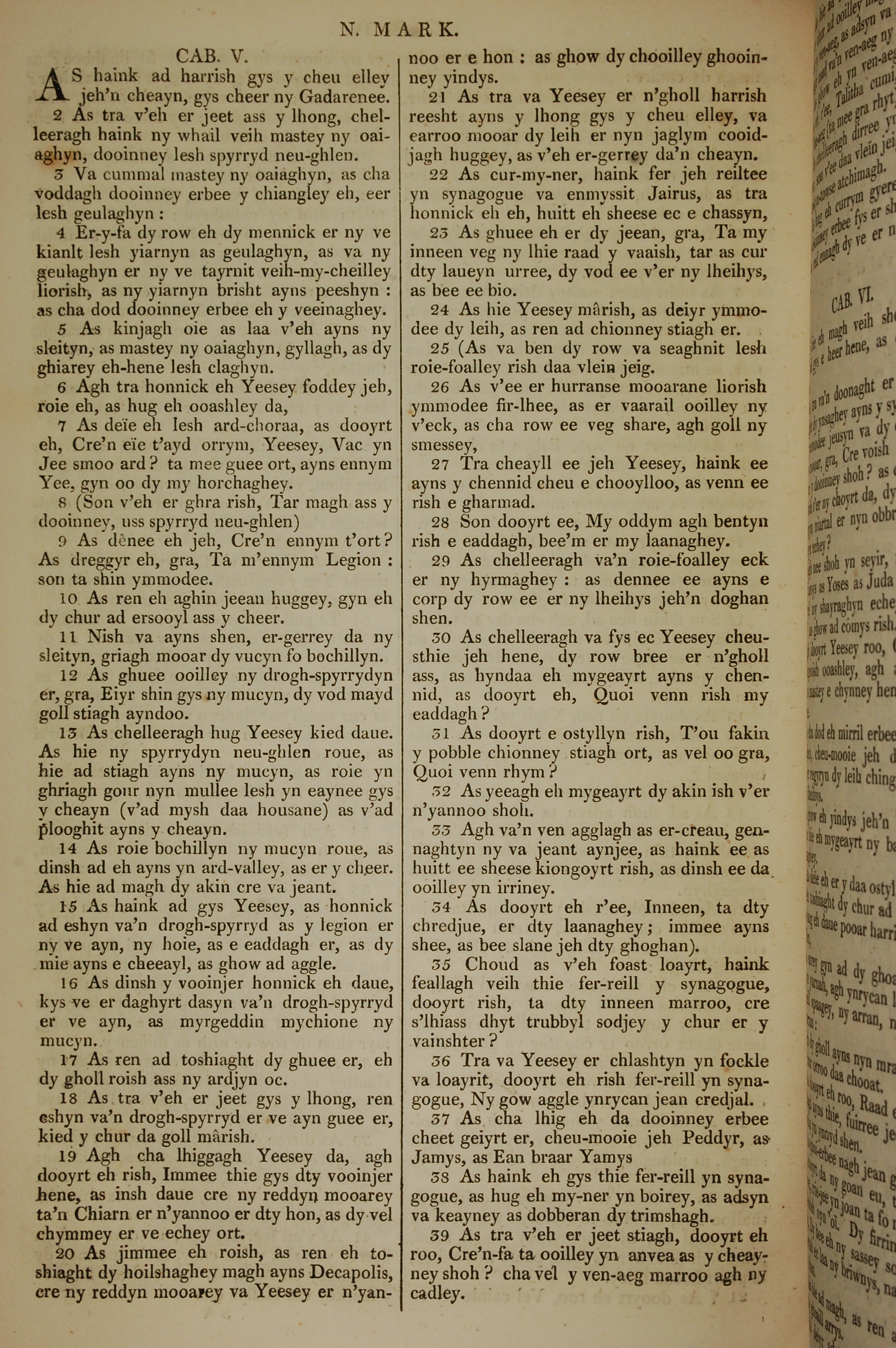1819年曼岛语圣经 马可福音 5 章 1 节到 5 章 39 节