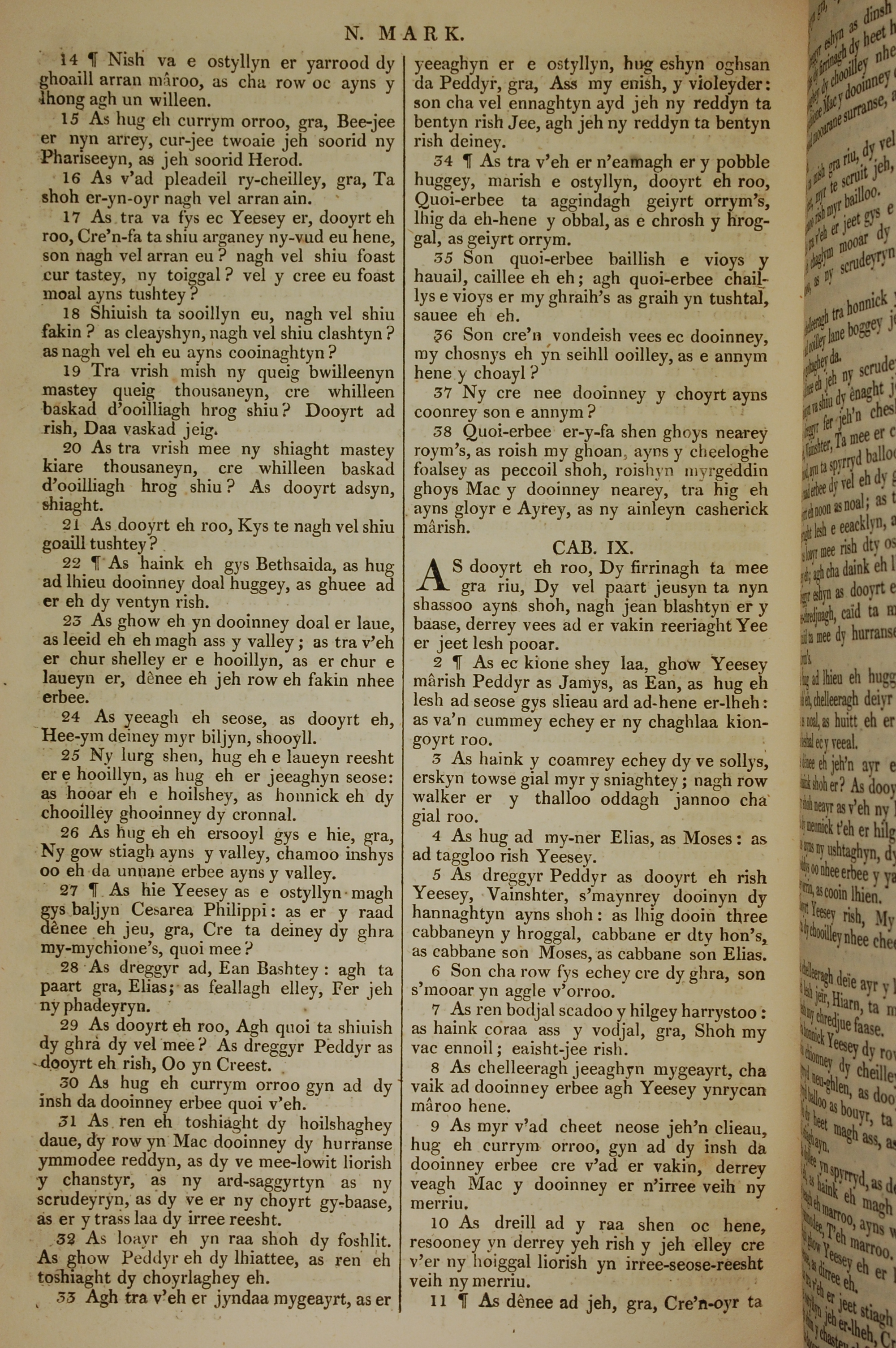 1819年曼岛语圣经 马可福音 8 章 14 节到 9 章 11 节