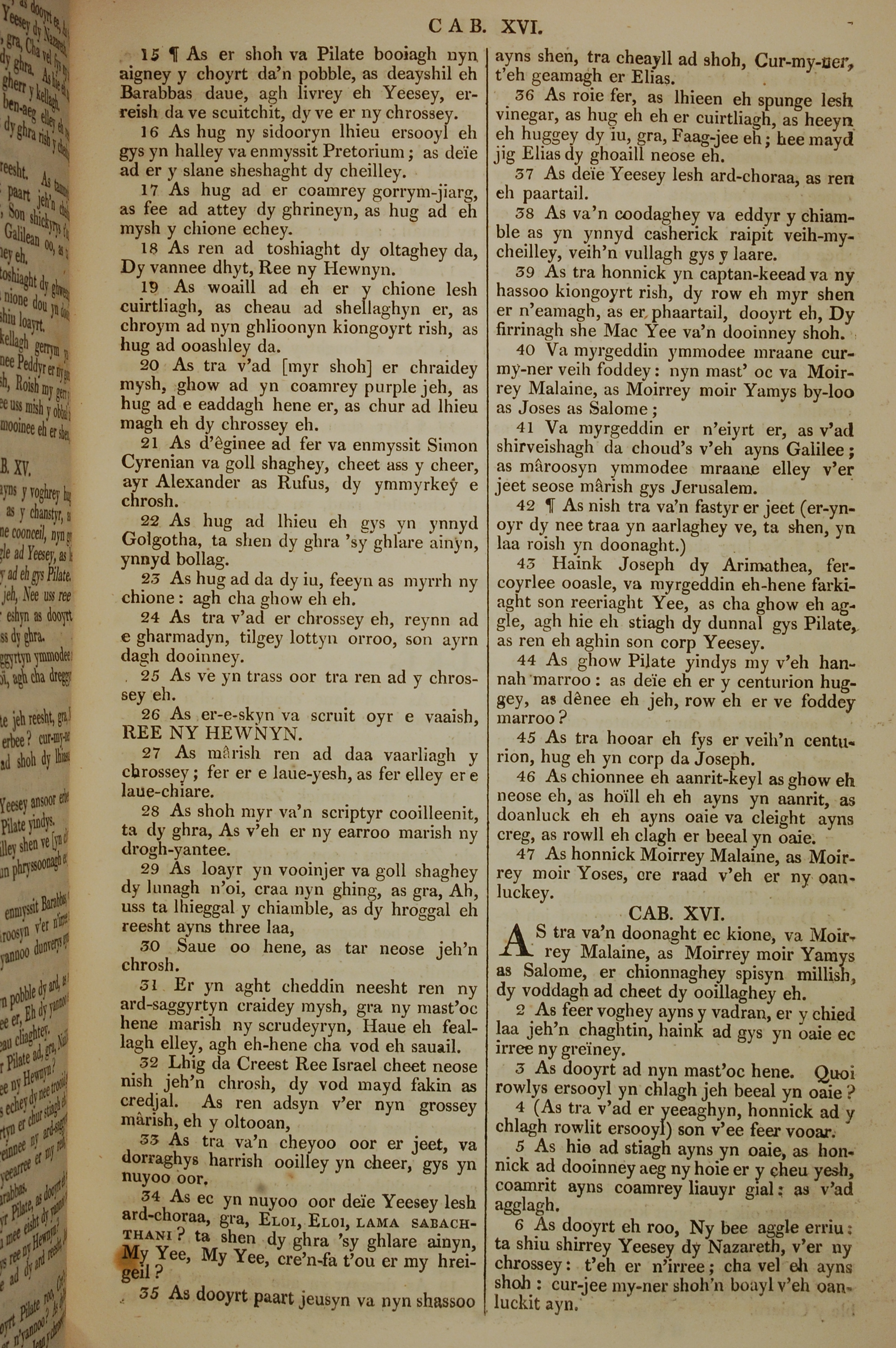 1819年曼岛语圣经 马可福音 15 章 15 节到 16 章 6 节