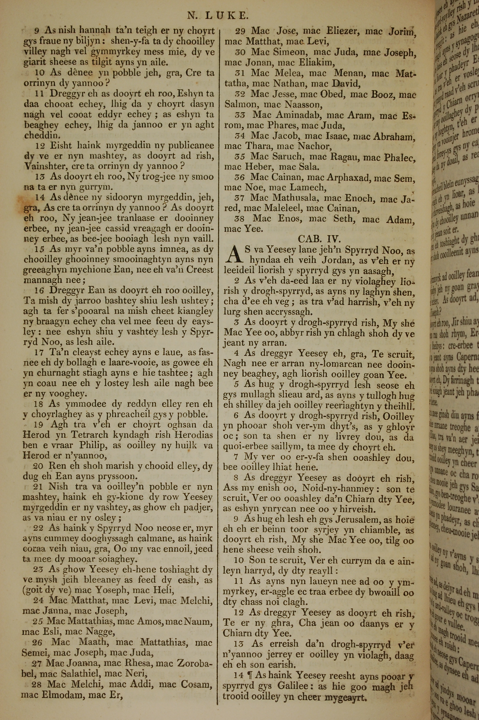 1819年曼岛语圣经 路加福音 3 章 9 节到 4 章 14 节