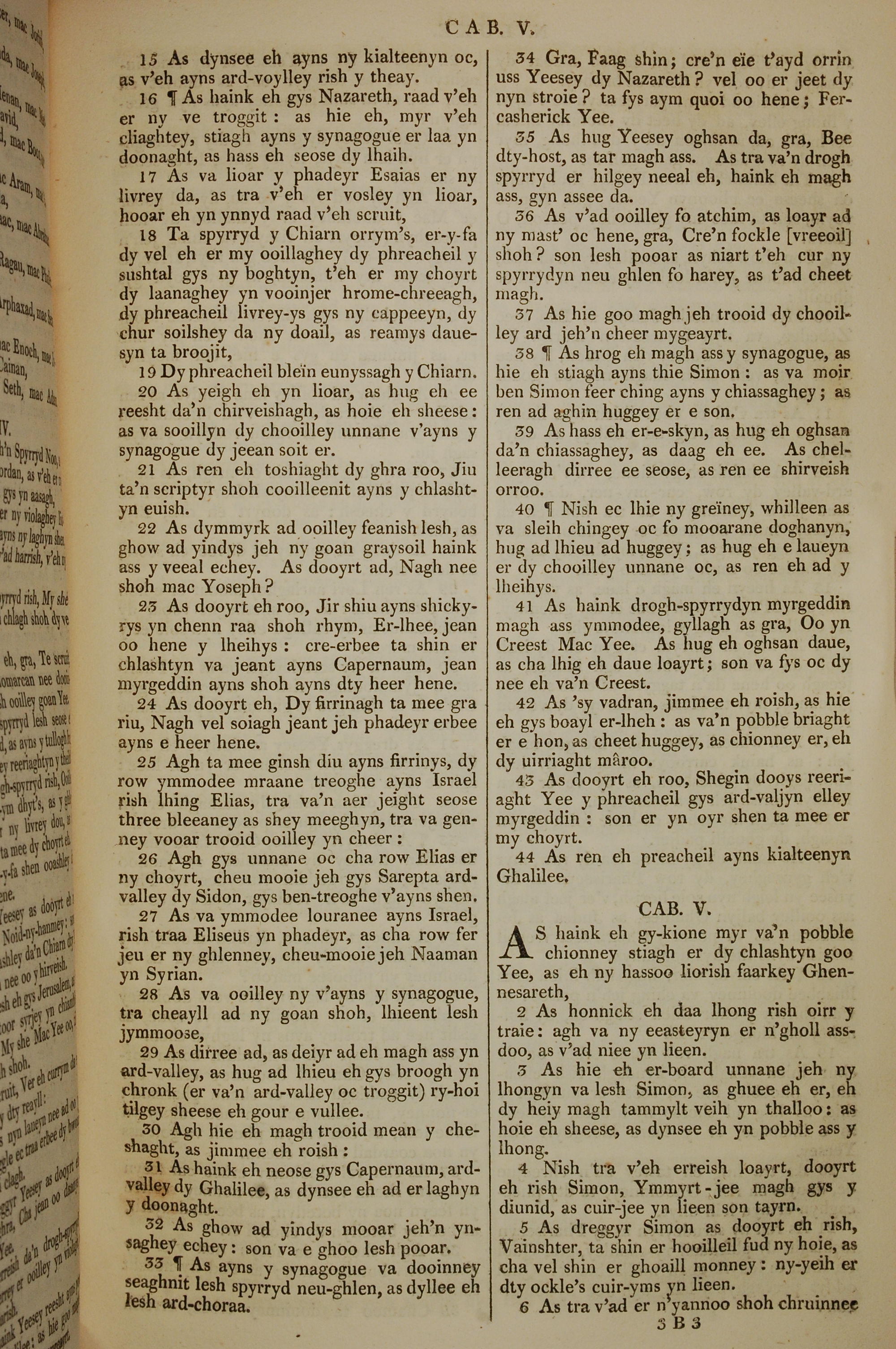 1819年曼岛语圣经 路加福音 4 章 15 节到 5 章 6 节