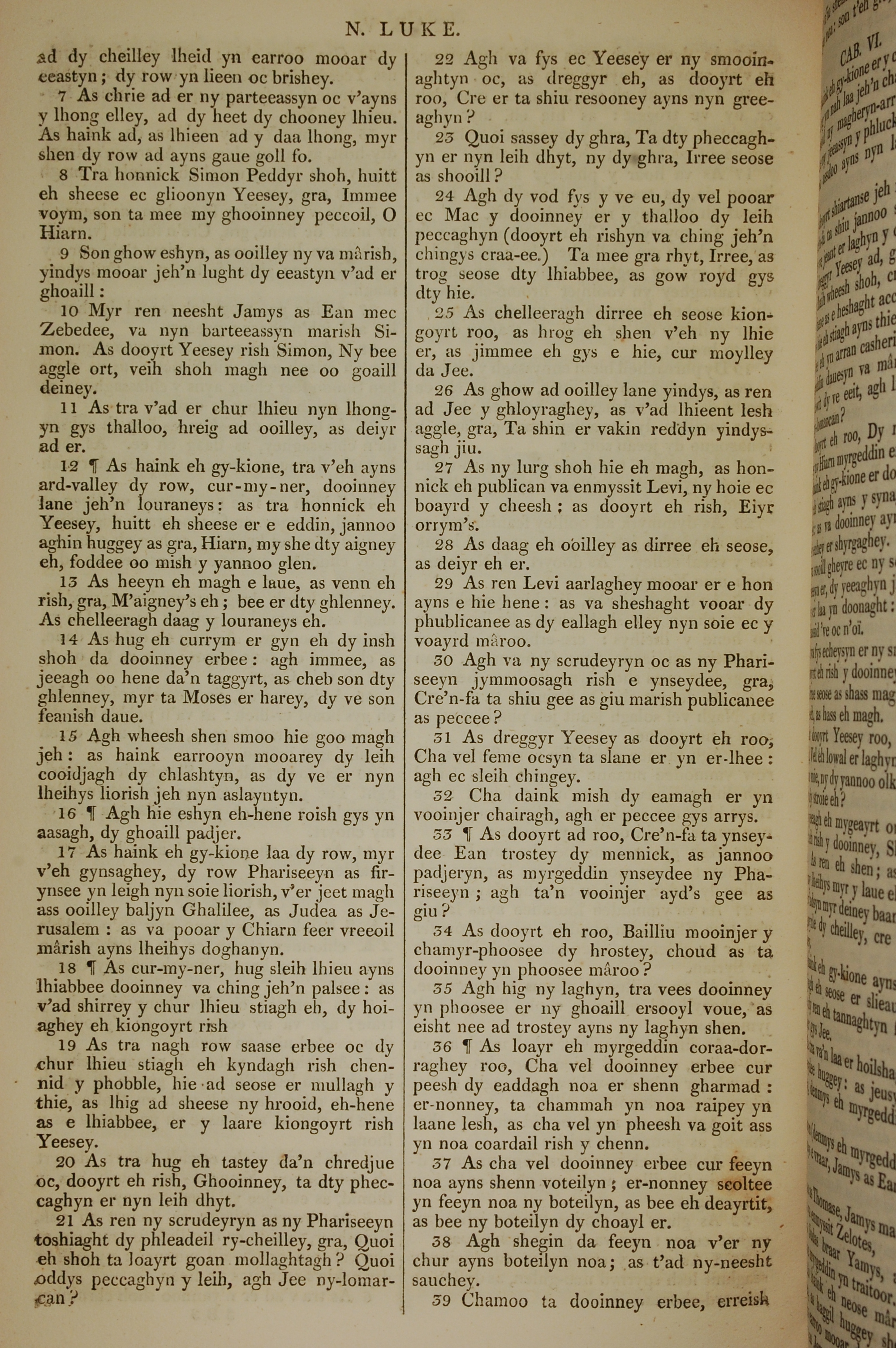 1819年曼岛语圣经 路加福音 5 章 7 节到 5 章 39 节