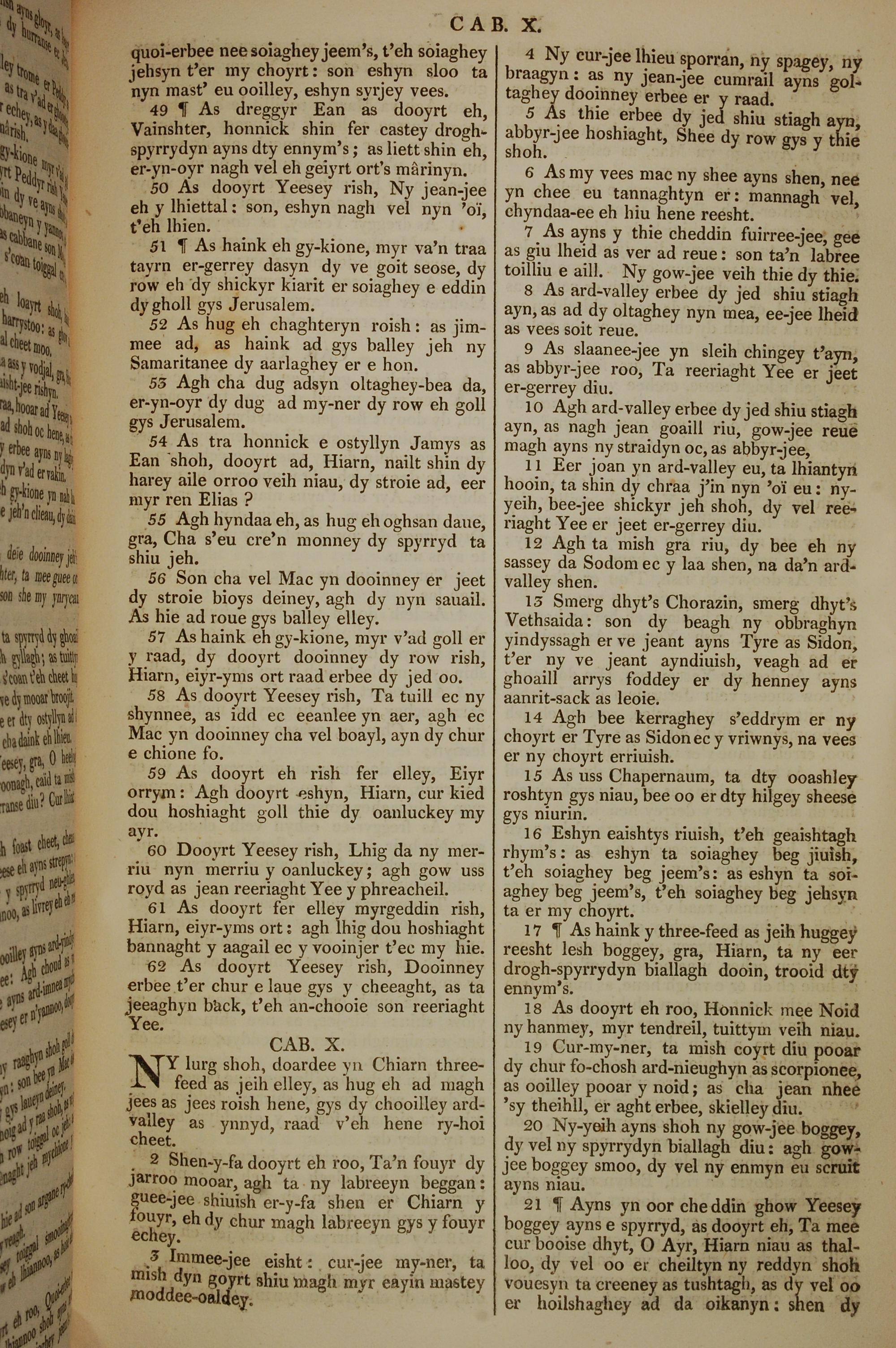 1819年曼岛语圣经 路加福音 9 章 49 节到 10 章 21 节