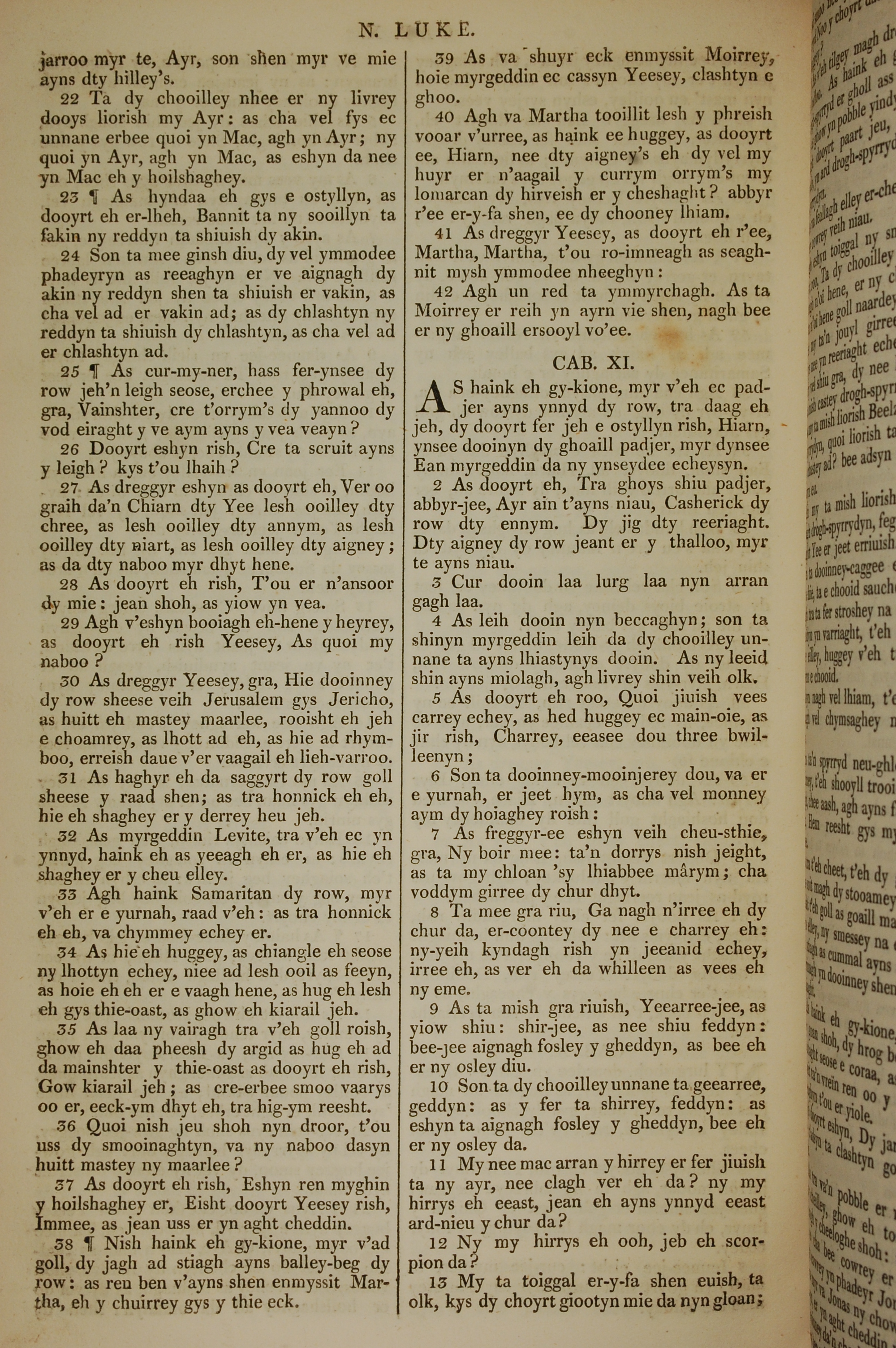 1819年曼岛语圣经 路加福音 10 章 22 节到 11 章 13 节