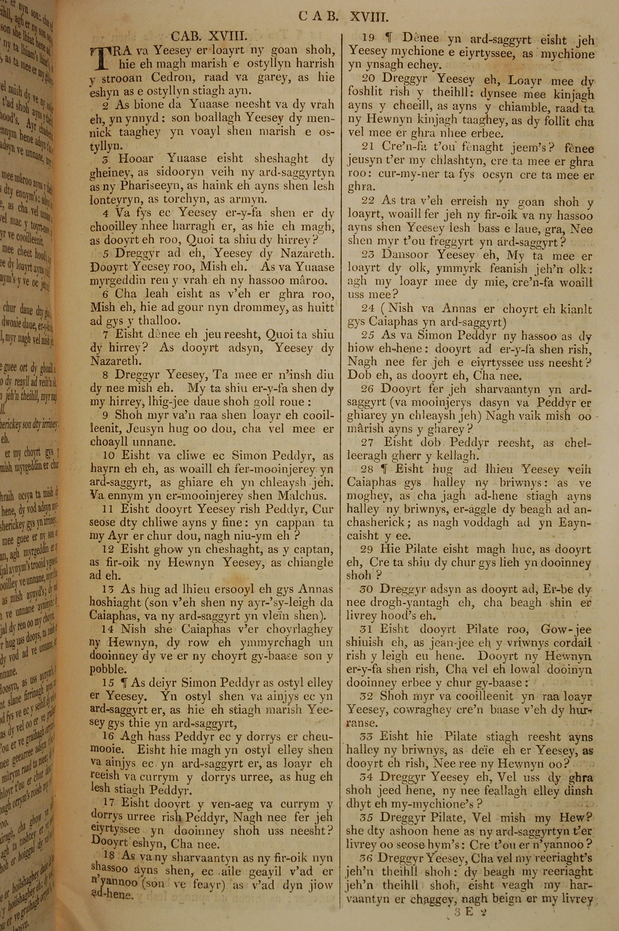 1819年曼岛语圣经 约翰福音 18 章 1 节到 18 章 36 节