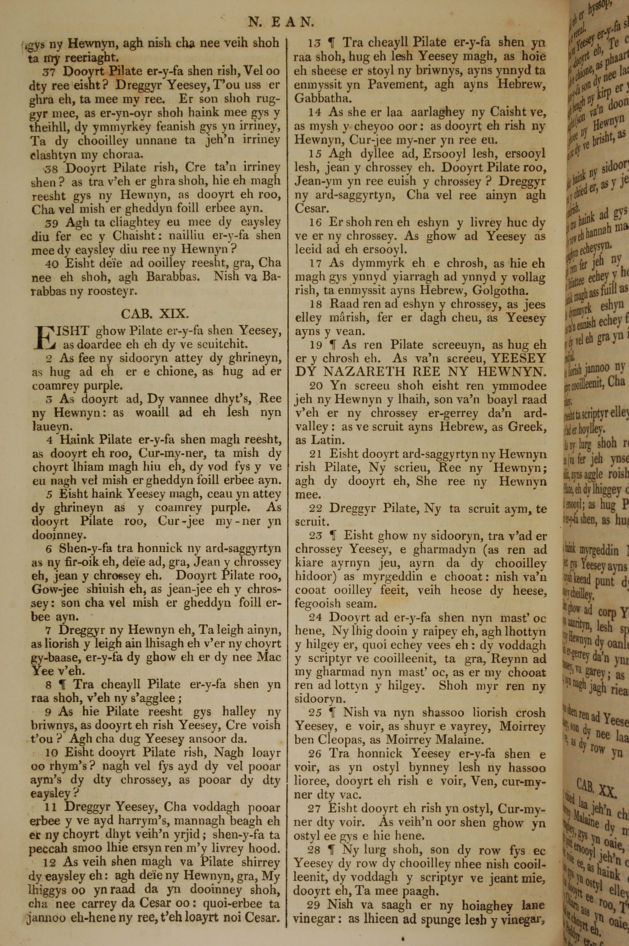 1819年曼岛语圣经 约翰福音 18 章 37 节到 19 章 29 节