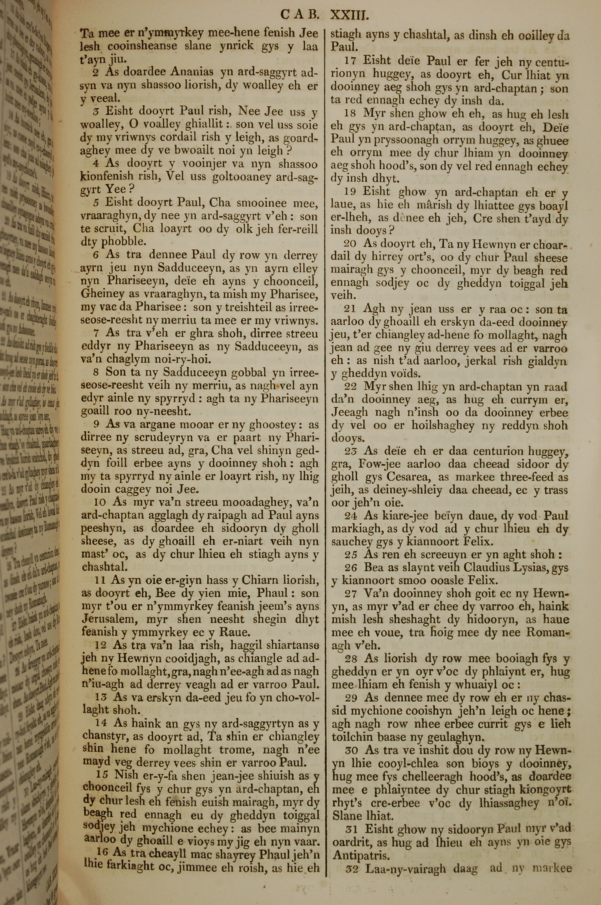 1819年曼岛语圣经 使徒行传 23 章 2 节到 23 章 32 节