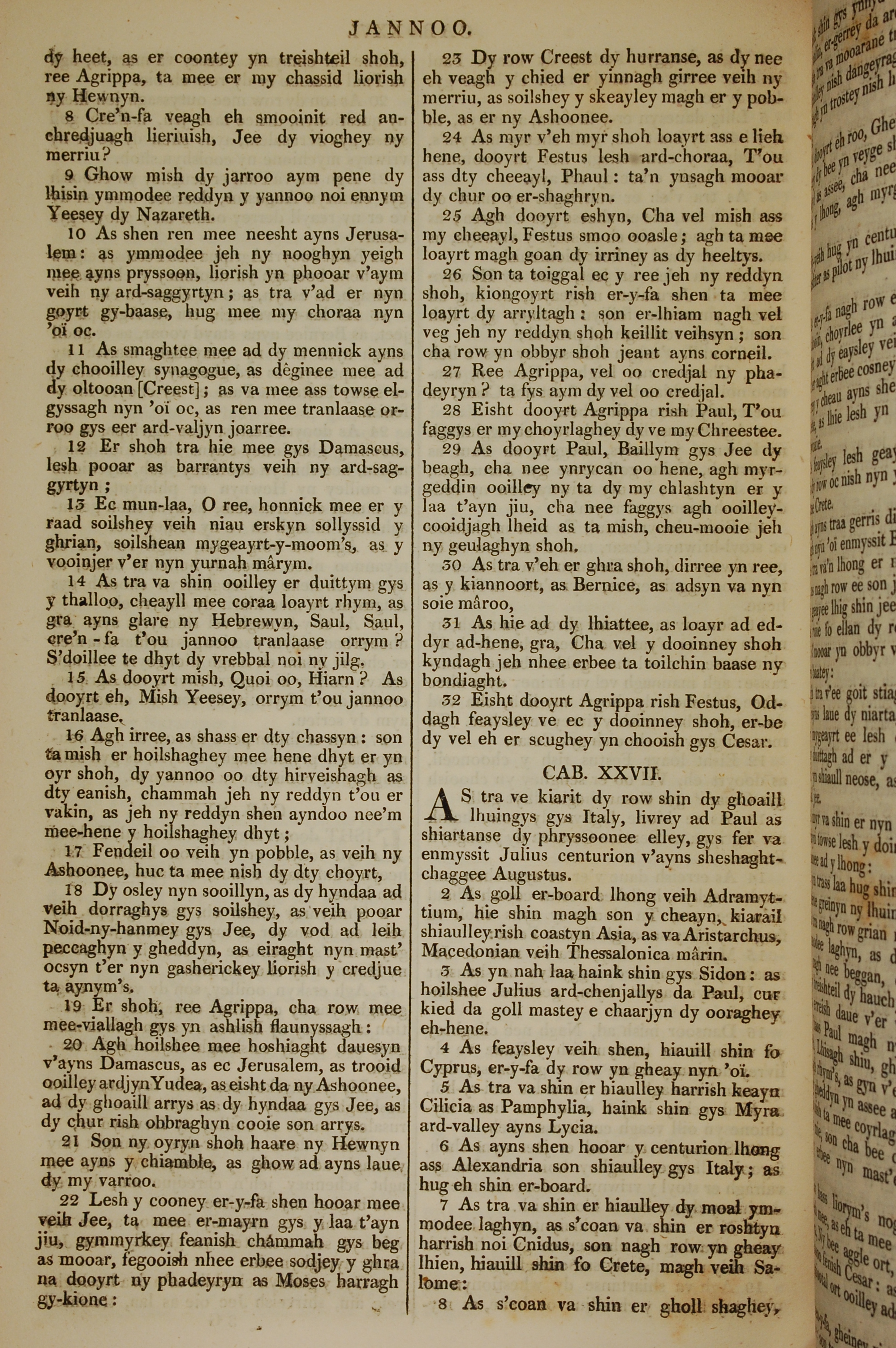 1819年曼岛语圣经 使徒行传 26 章 8 节到 27 章 8 节