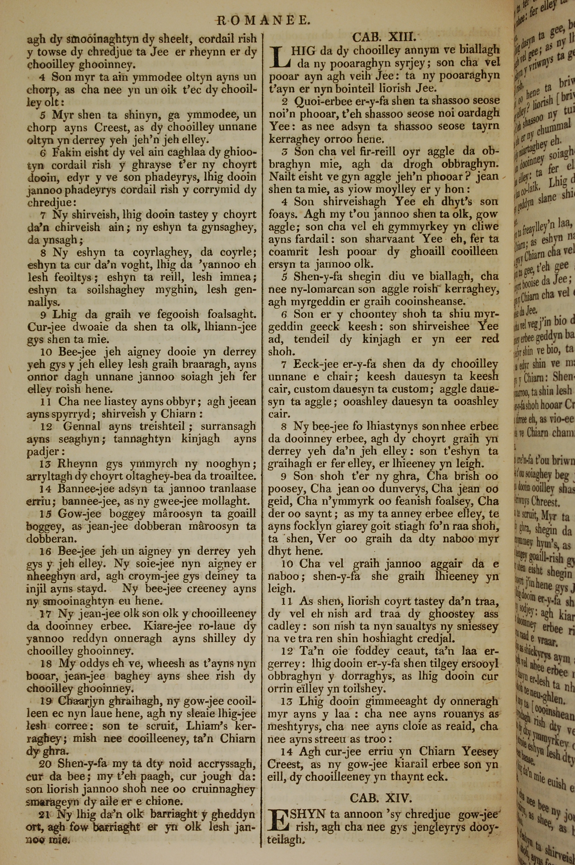 1819年曼岛语圣经 罗马书 12 章 4 节到 14 章 1 节