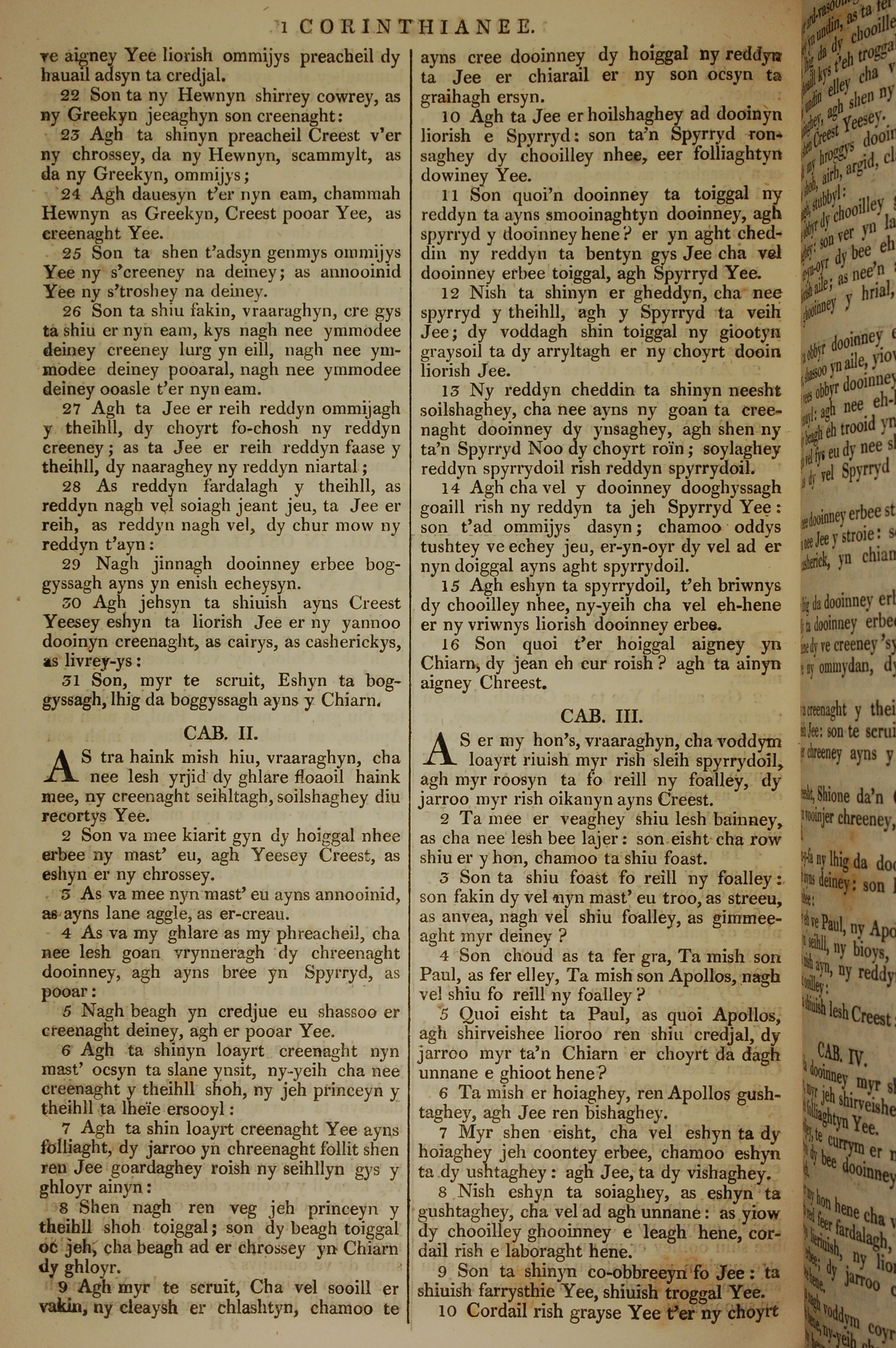 1819年曼岛语圣经 哥林多前书 1 章 22 节到 3 章 10 节