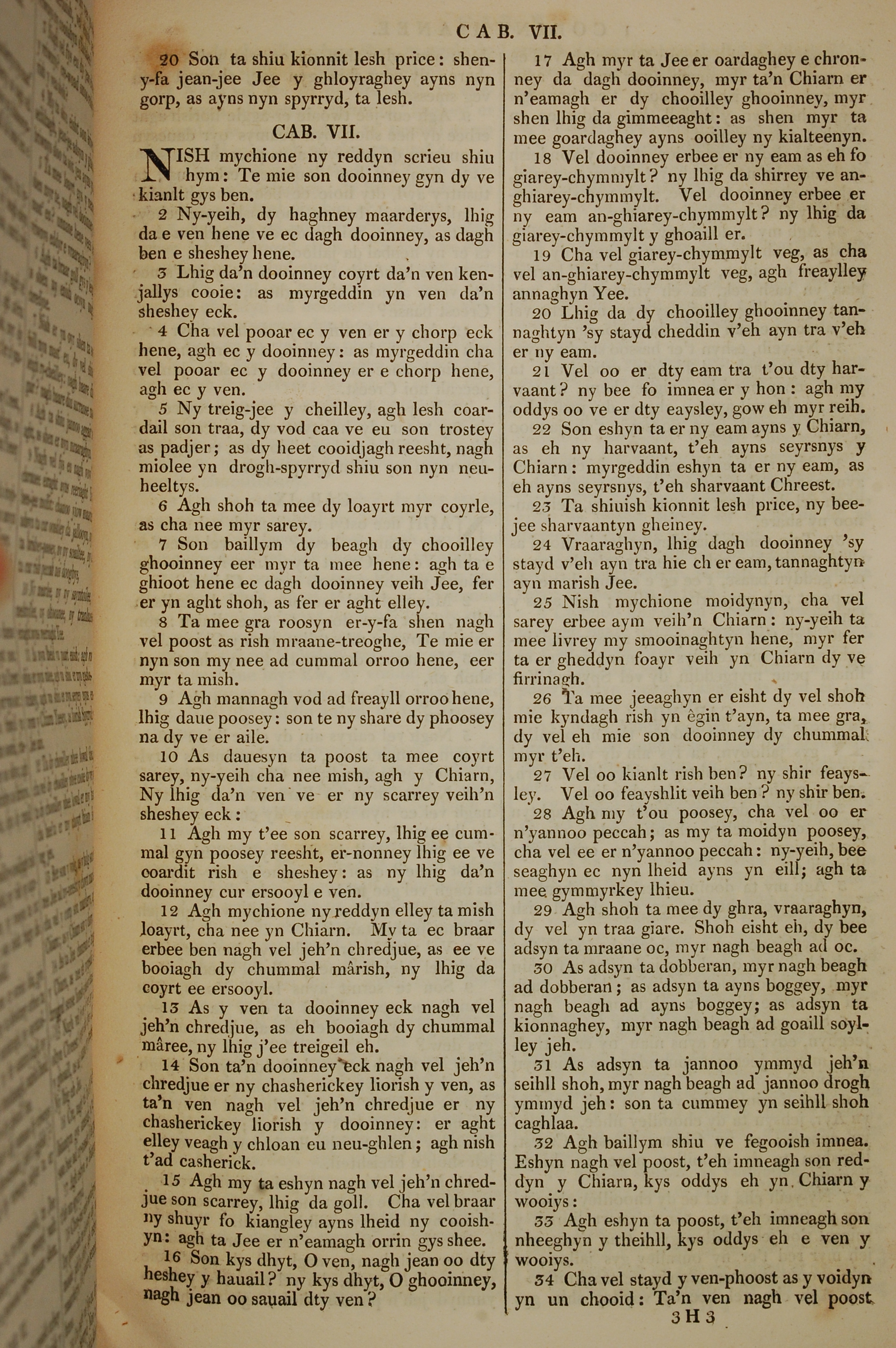 1819年曼岛语圣经 哥林多前书 6 章 20 节到 7 章 34 节