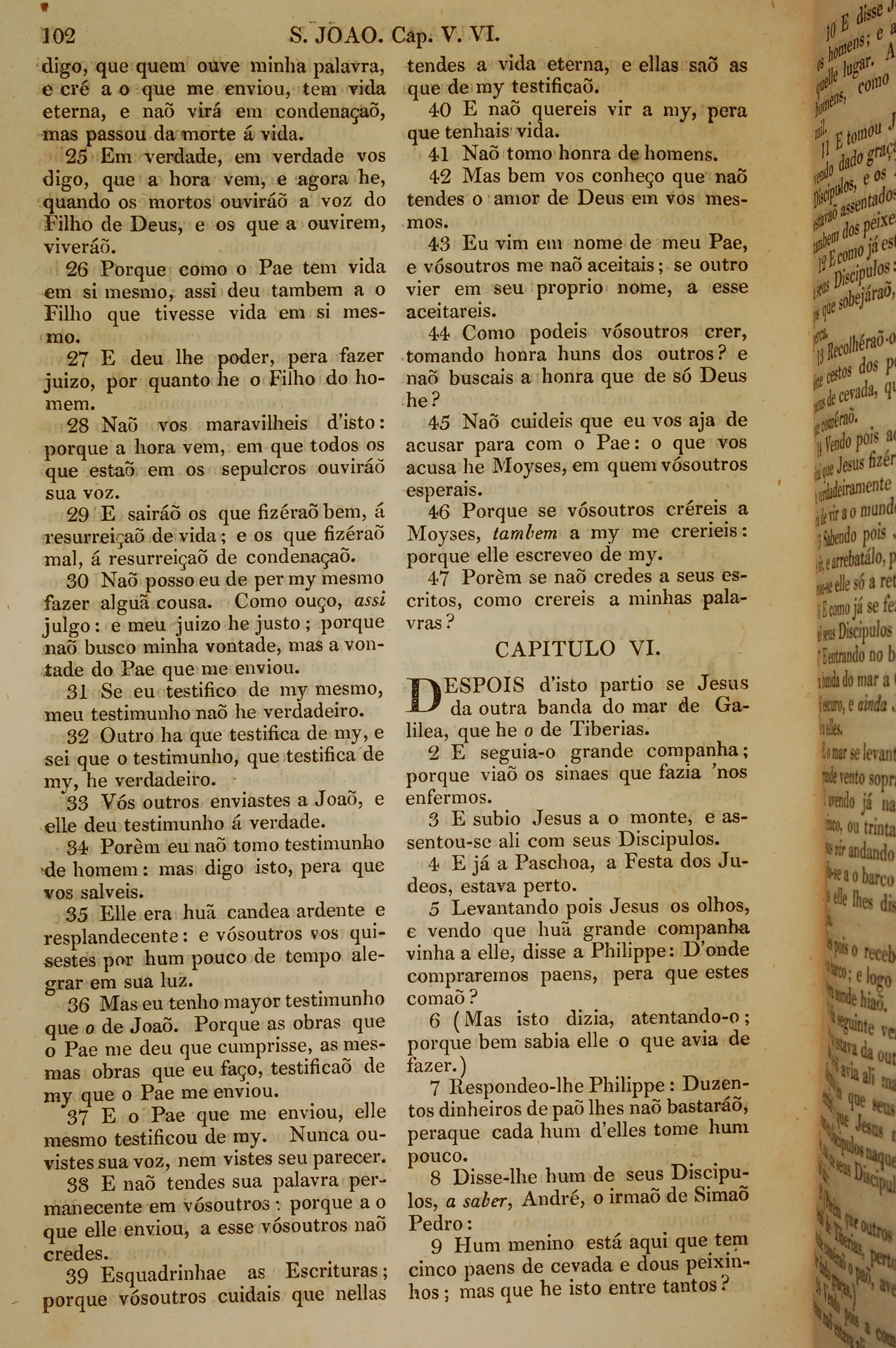 1819年葡萄牙语新约全书 约翰福音 5 章 25 节到 6 章 9 节