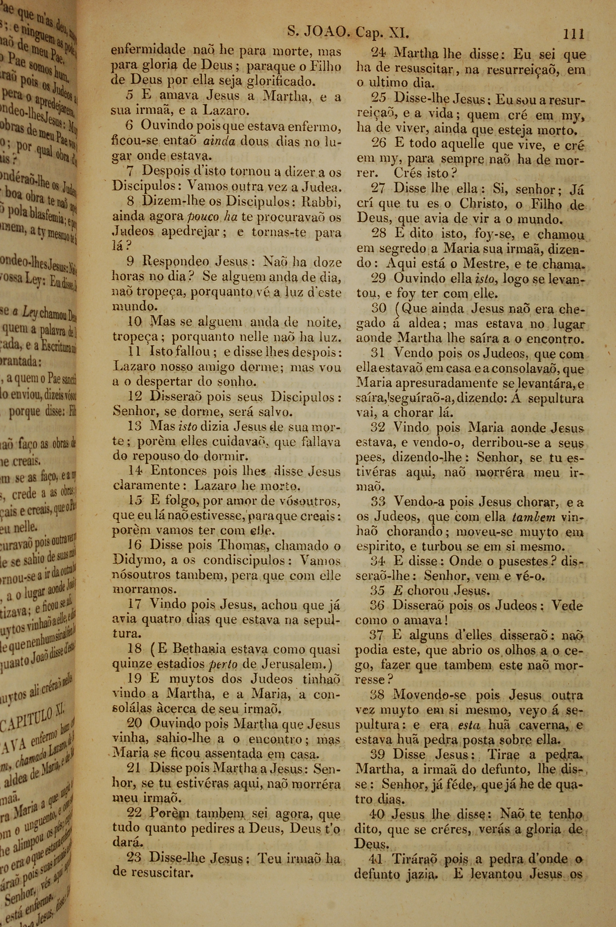 1819年葡萄牙语新约全书 约翰福音 11 章 5 节到 11 章 41 节