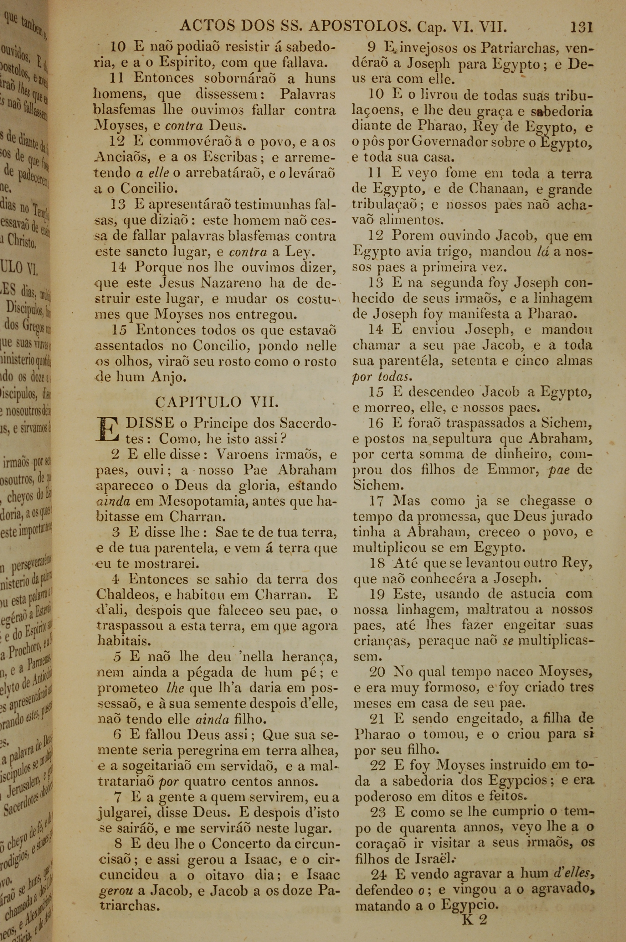 1819年葡萄牙语新约全书 使徒行传 6 章 10 节到 7 章 24 节