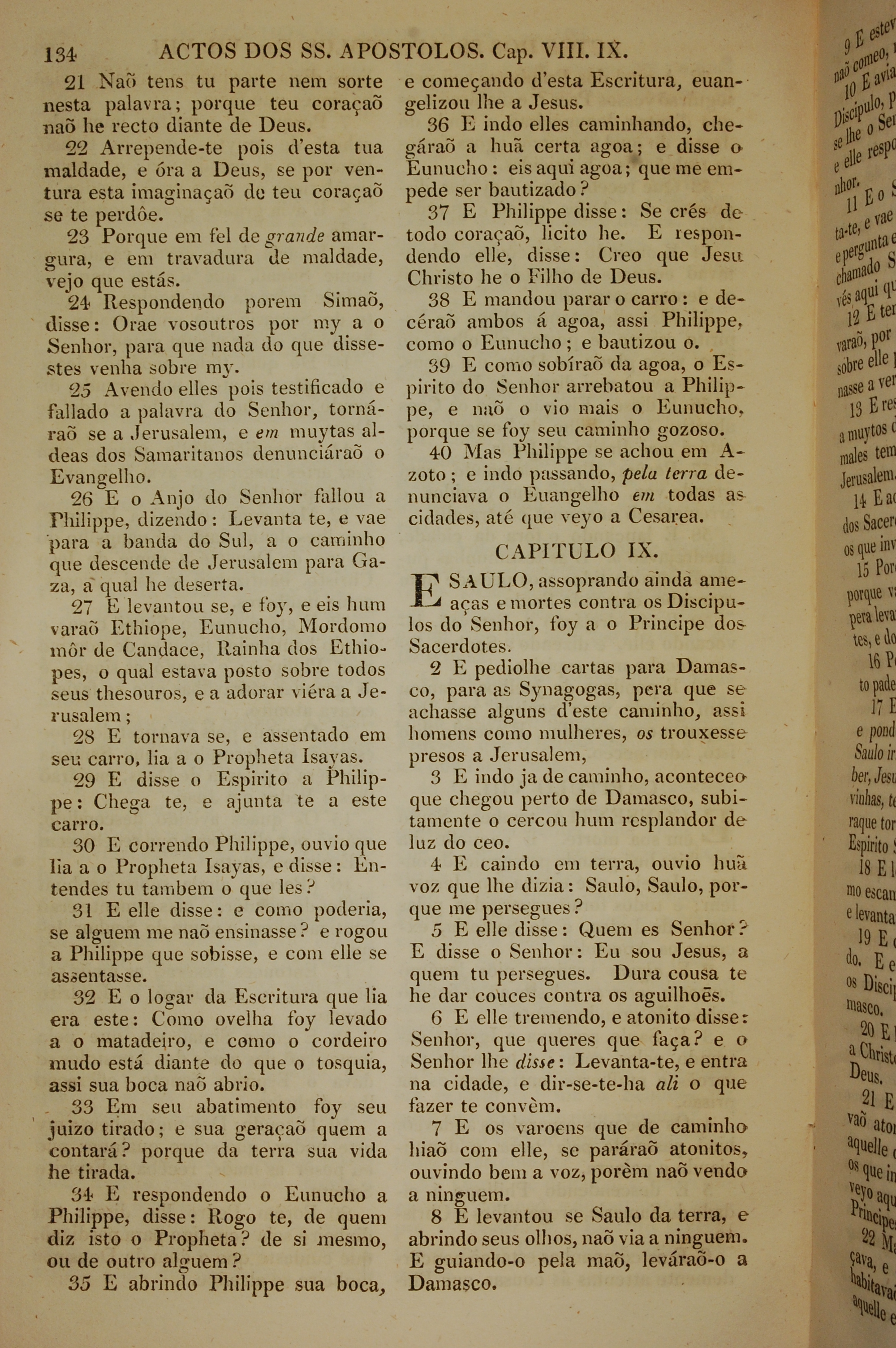 1819年葡萄牙语新约全书 使徒行传 8 章 21 节到 9 章 8 节