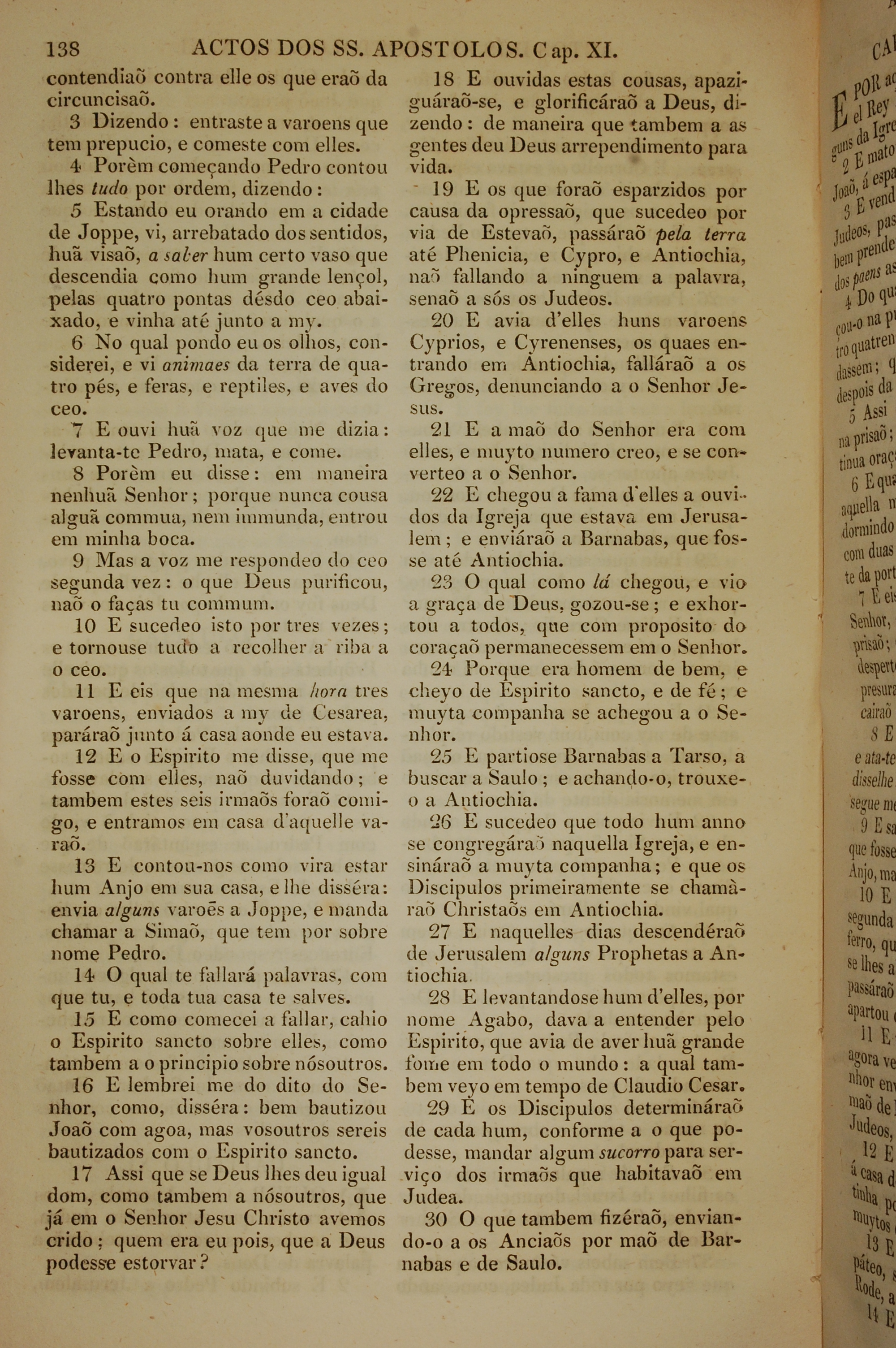 1819年葡萄牙语新约全书 使徒行传 11 章 3 节到 11 章 30 节