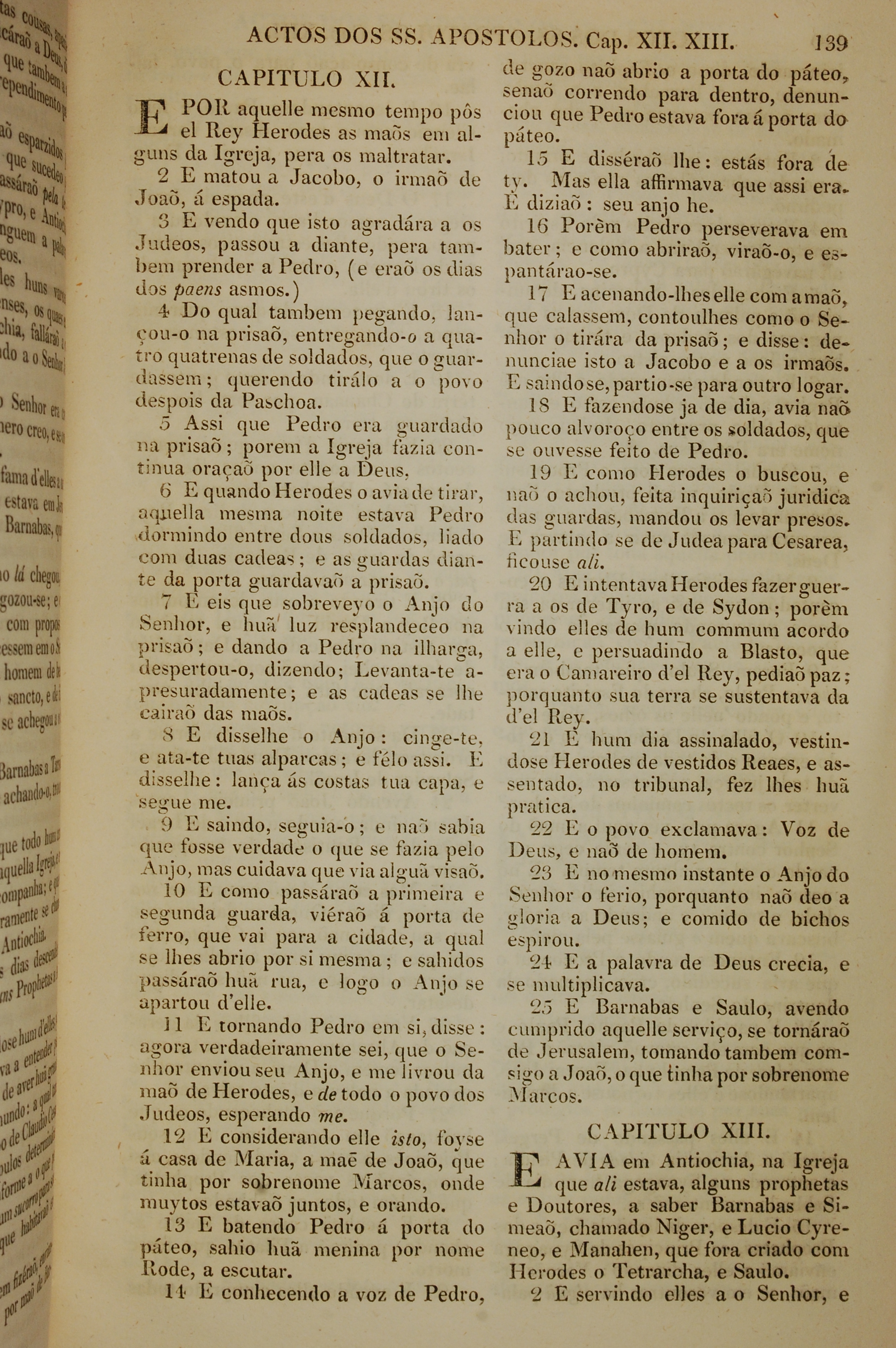 1819年葡萄牙语新约全书 使徒行传 12 章 1 节到 13 章 2 节