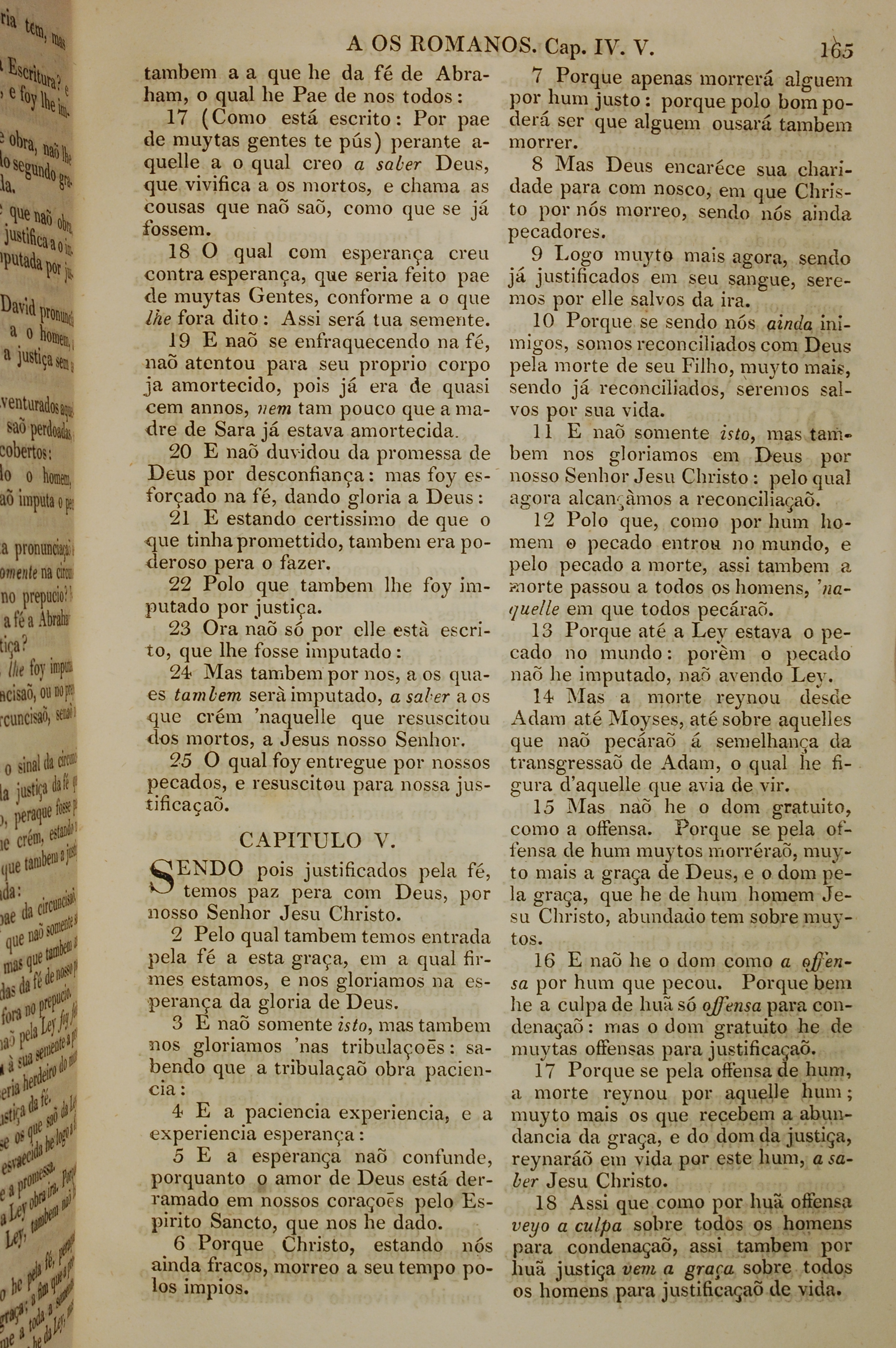 1819年葡萄牙语新约全书 罗马书 4 章 17 节到 5 章 18 节