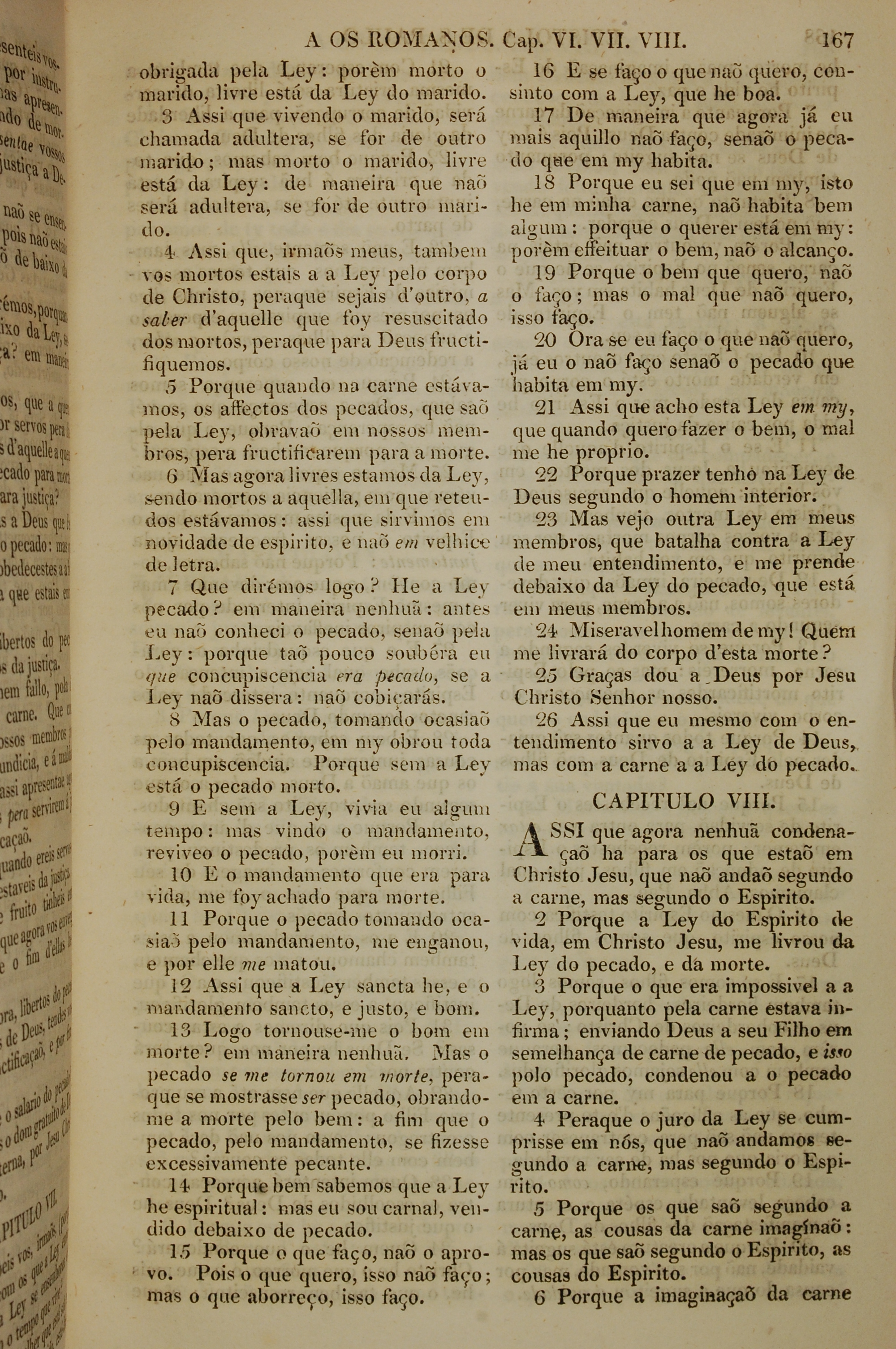 1819年葡萄牙语新约全书 罗马书 7 章 3 节到 8 章 6 节