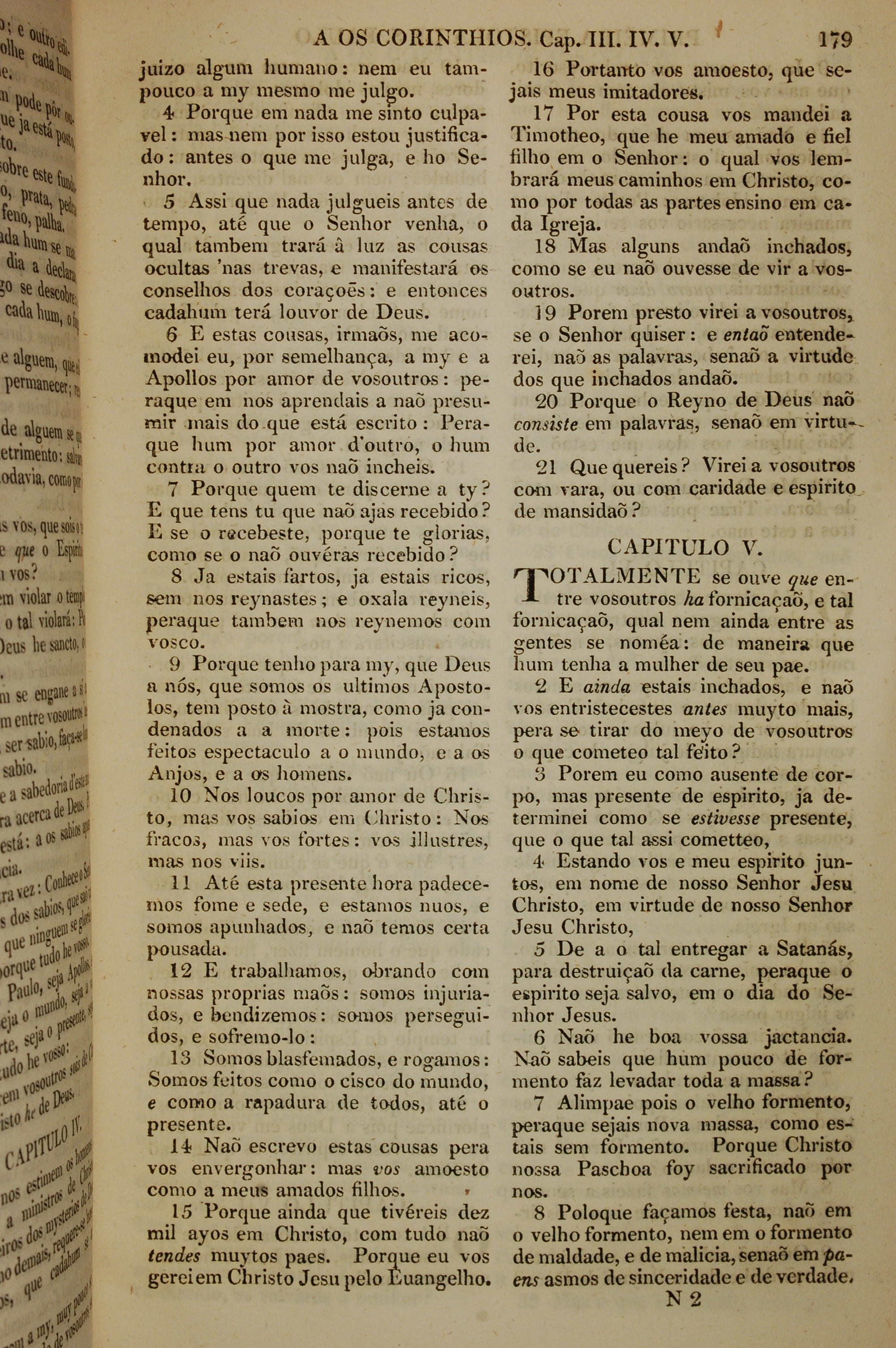 1819年葡萄牙语新约全书 哥林多前书 4 章 4 节到 5 章 8 节