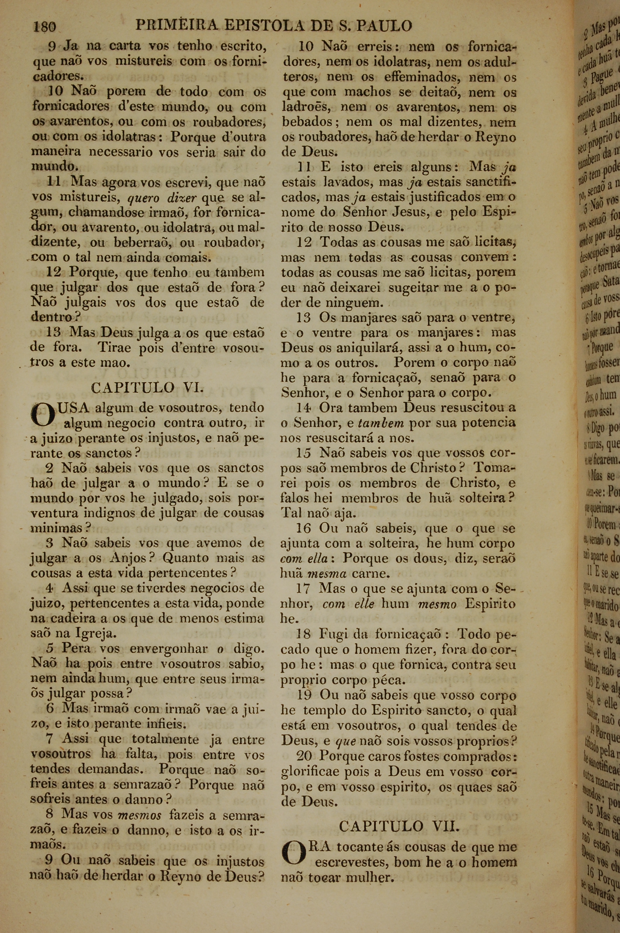 1819年葡萄牙语新约全书 哥林多前书 5 章 9 节到 7 章 1 节