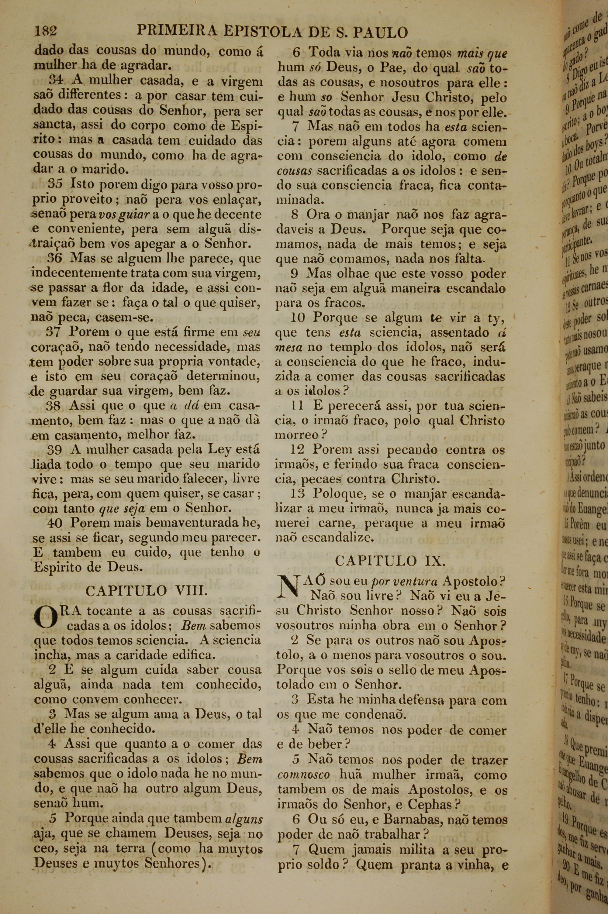 1819年葡萄牙语新约全书 哥林多前书 7 章 34 节到 9 章 7 节