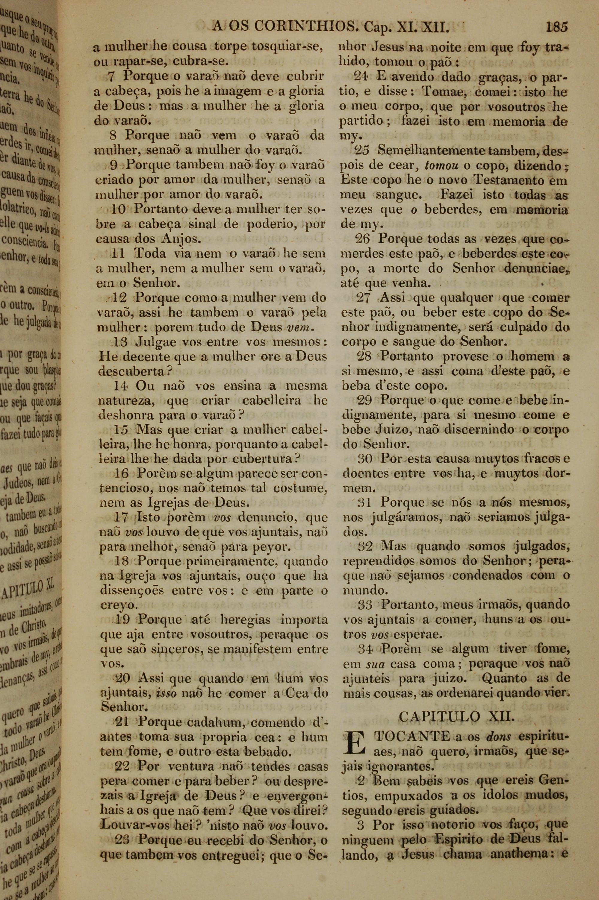 1819年葡萄牙语新约全书 哥林多前书 11 章 7 节到 12 章 3 节