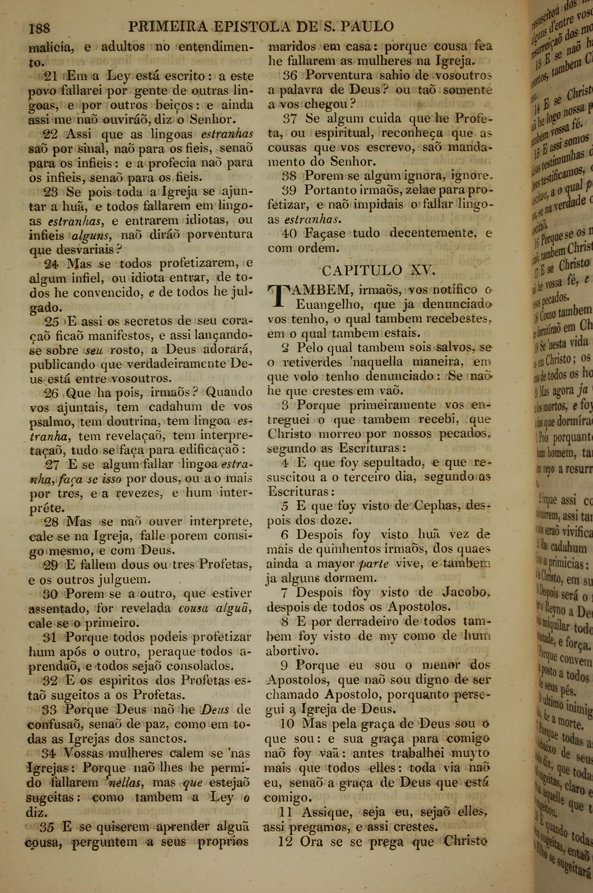 1819年葡萄牙语新约全书 哥林多前书 14 章 21 节到 15 章 12 节