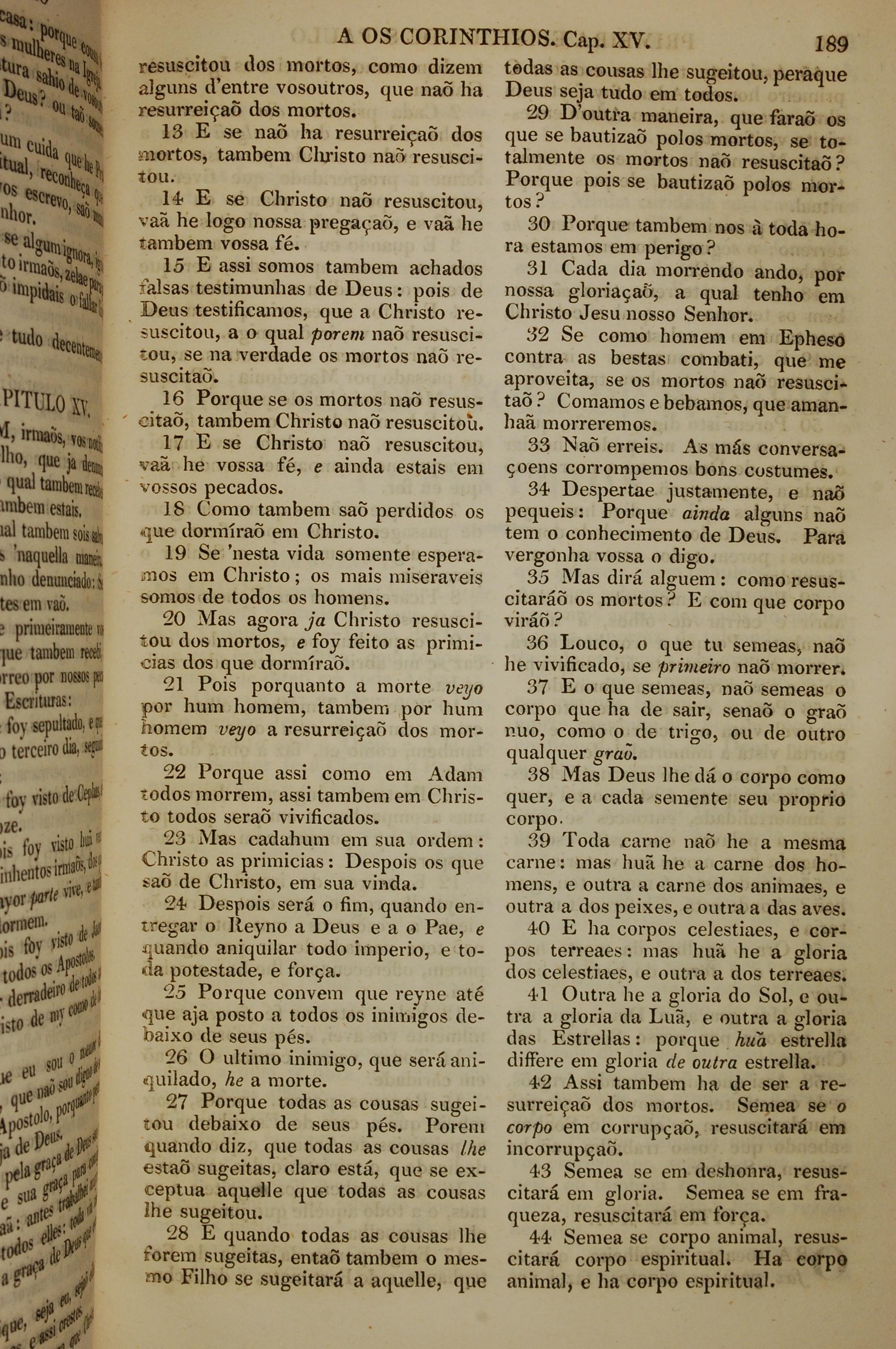 1819年葡萄牙语新约全书 哥林多前书 15 章 13 节到 15 章 44 节