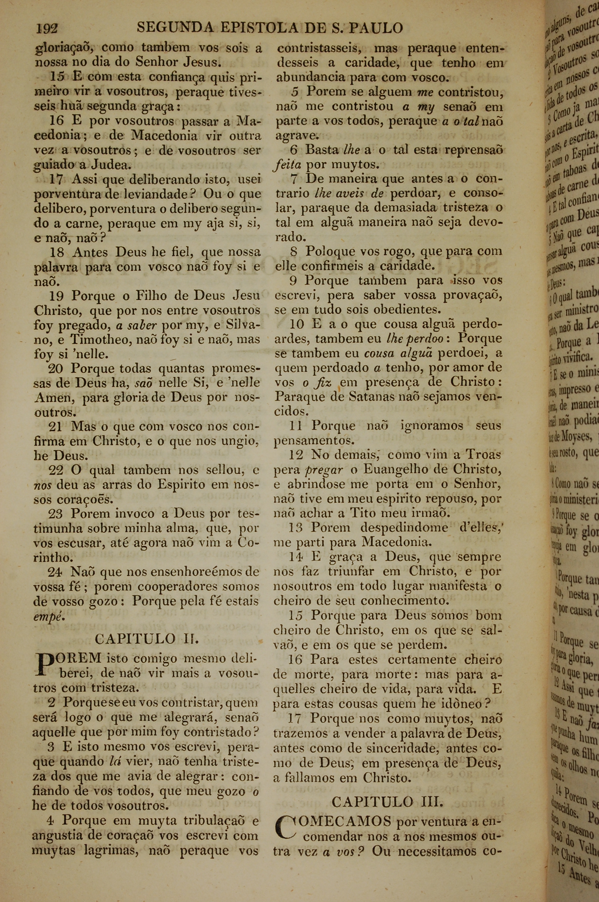 1819年葡萄牙语新约全书 哥林多后书 1 章 15 节到 3 章 1 节