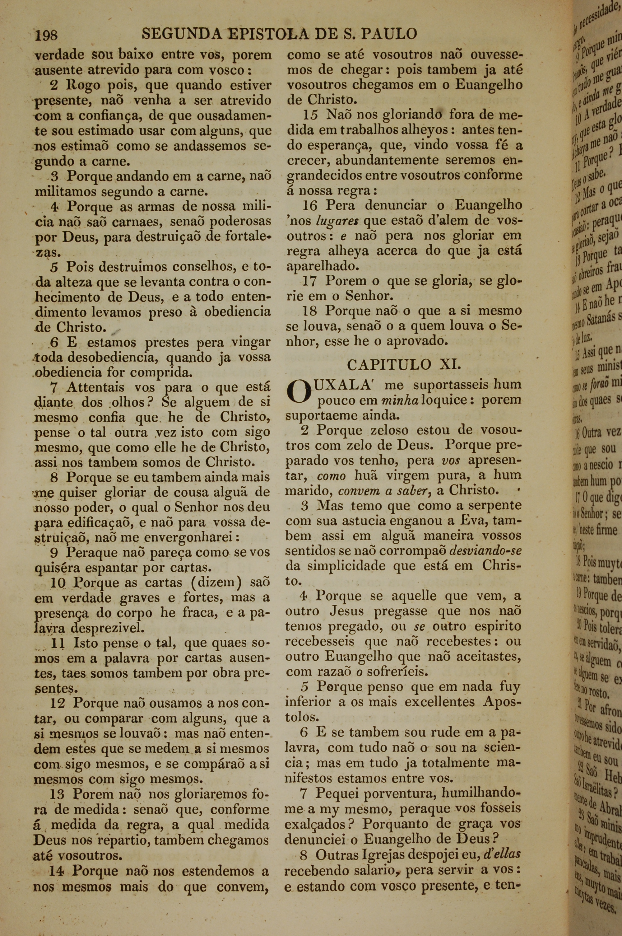 1819年葡萄牙语新约全书 哥林多后书 10 章 2 节到 11 章 8 节