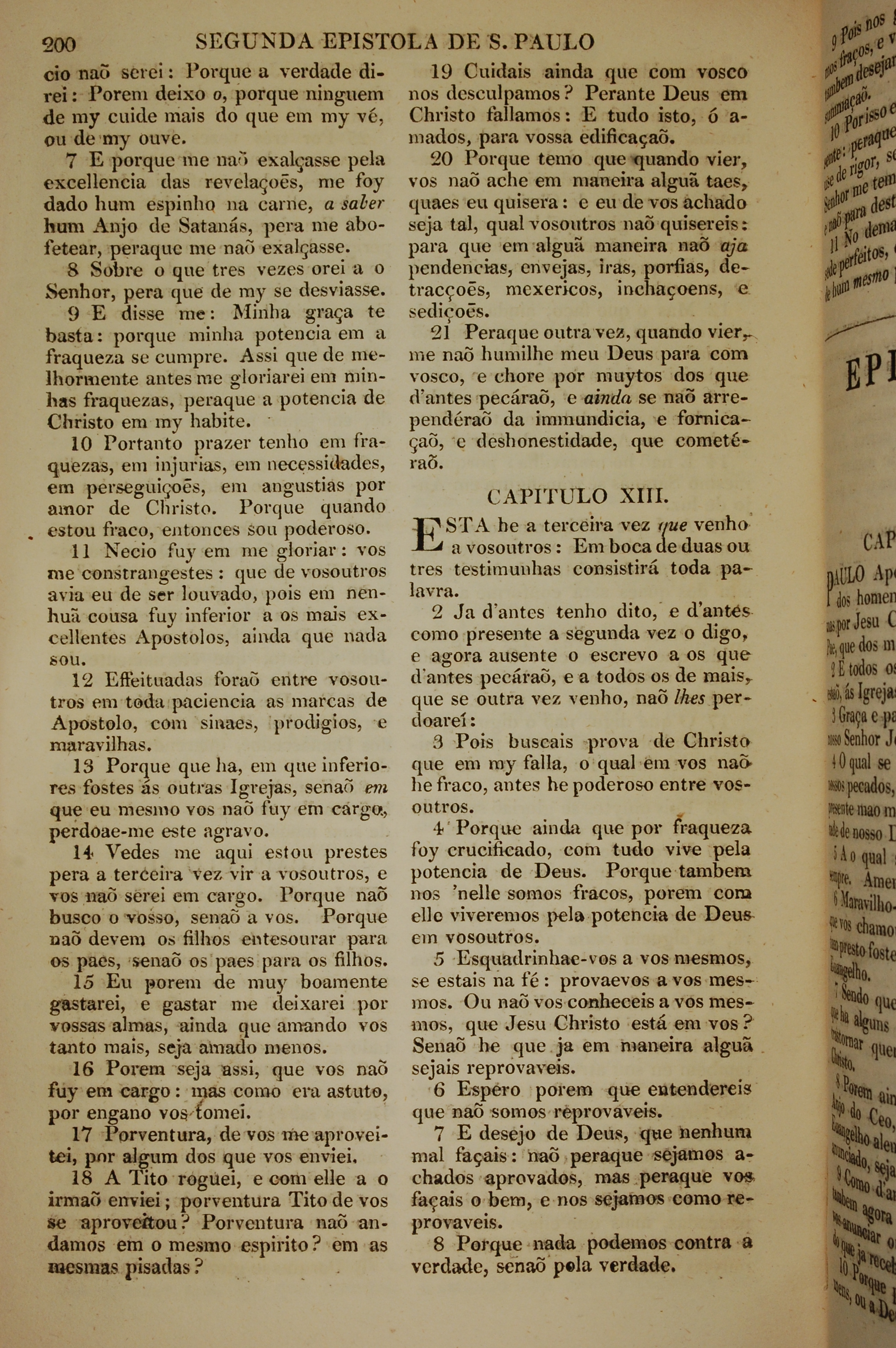 1819年葡萄牙语新约全书 哥林多后书 12 章 7 节到 13 章 8 节