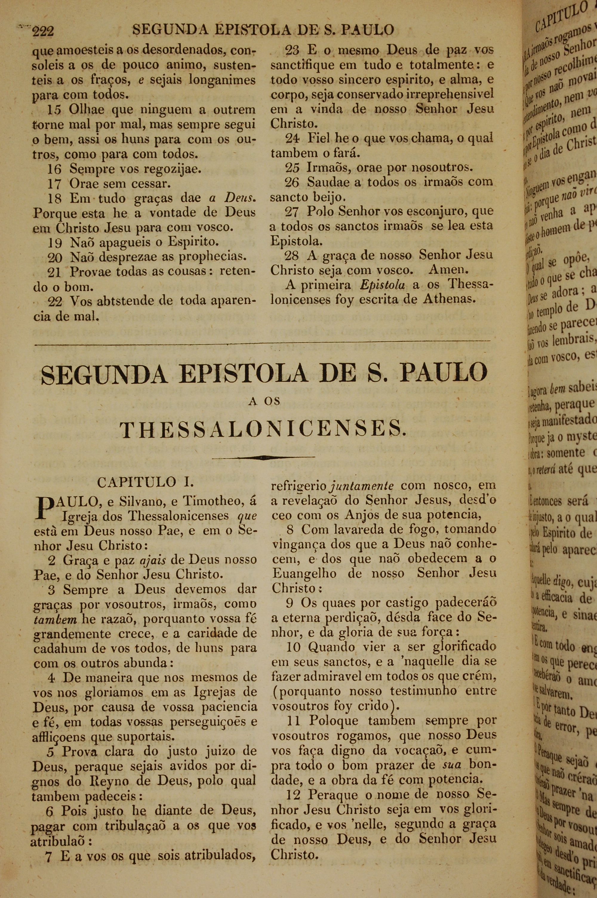1819年葡萄牙语新约全书 帖撒罗尼迦前书 5 章 15 节到 5 章 28 节