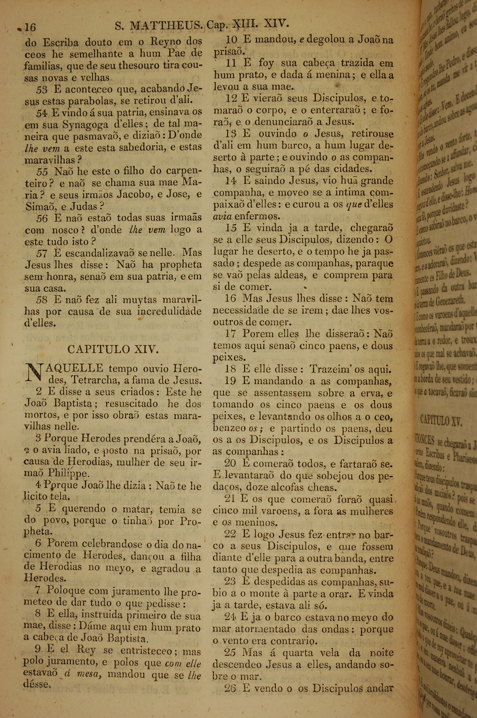 1819年葡萄牙语新约全书 马太福音 13 章 53 节到 14 章 26 节