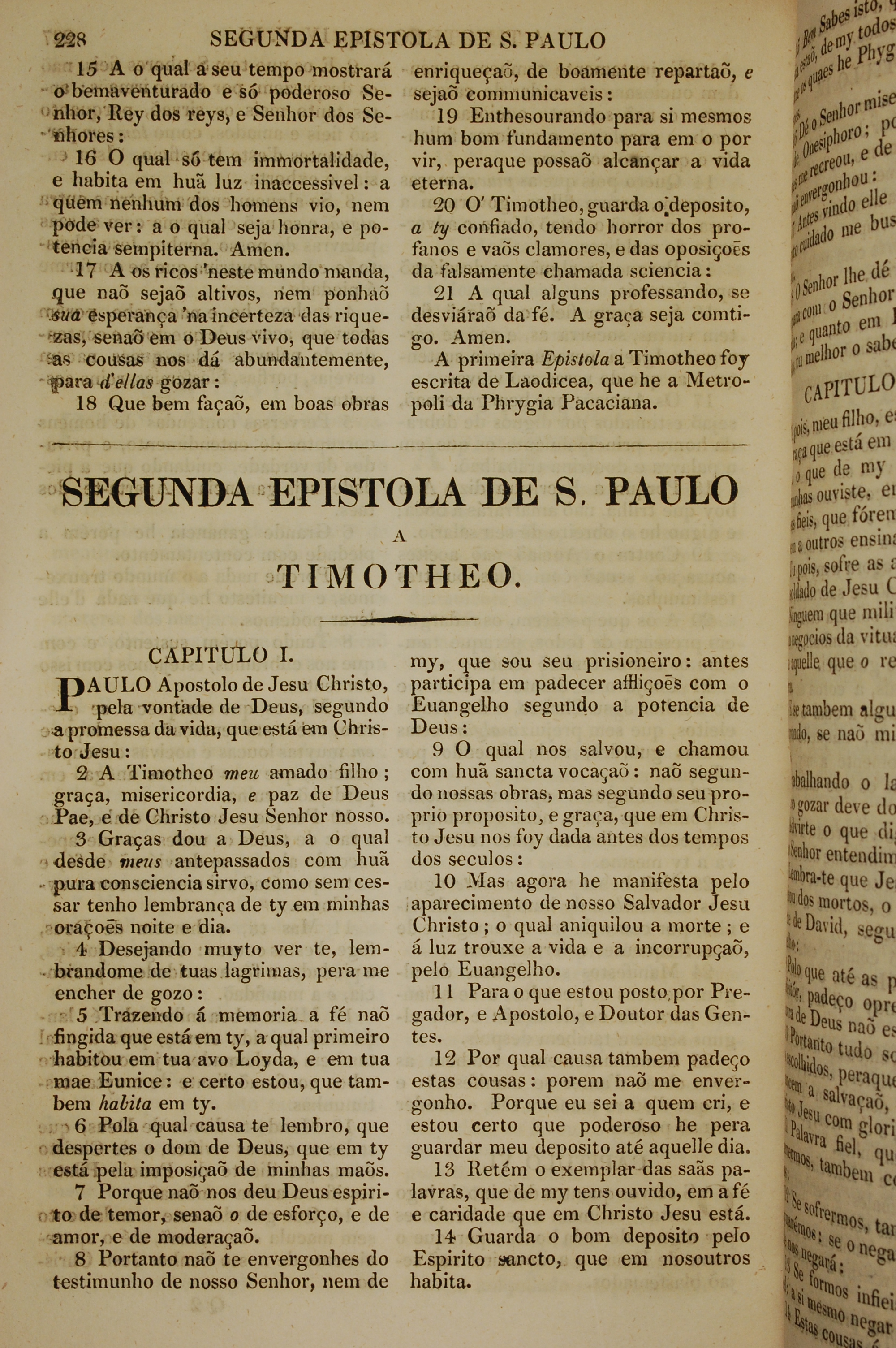 1819年葡萄牙语新约全书 提摩太后书 1 章 1 节到 1 章 14 节