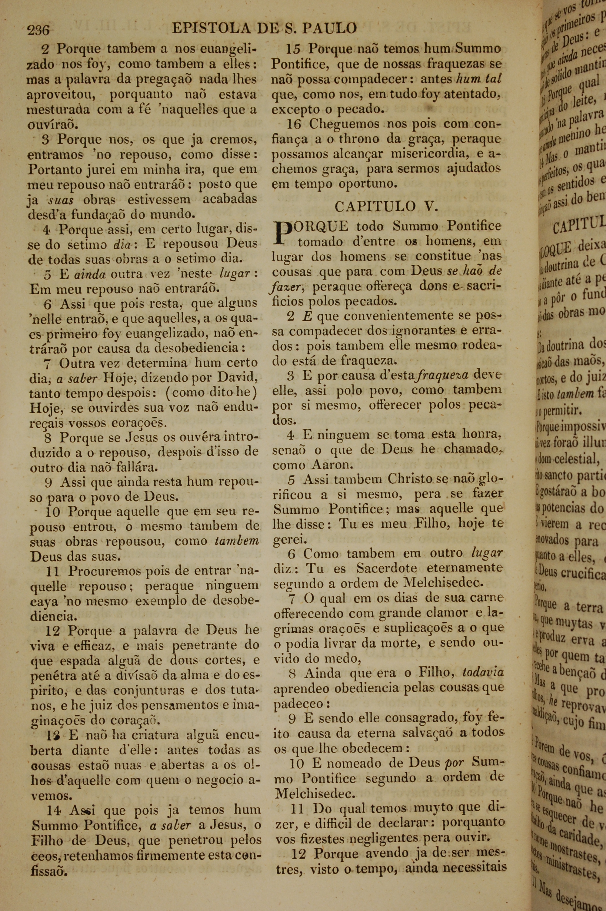 1819年葡萄牙语新约全书 希伯来书 4 章 2 节到 5 章 12 节